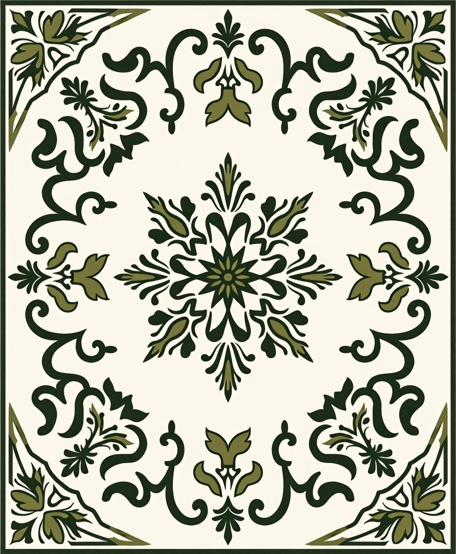 Distressed Botanical Damask with Scrollwork Accents (Ivory)