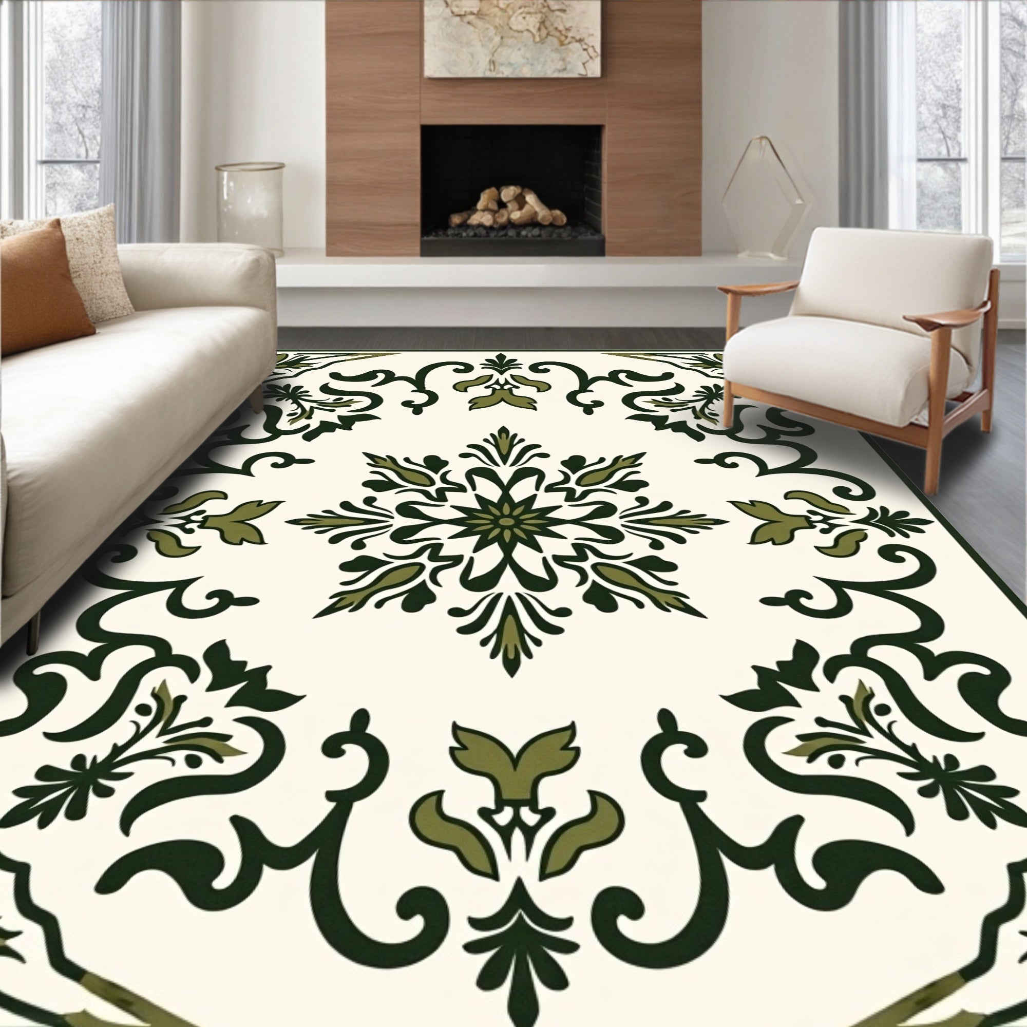 Flatwoven High Traffic Area Rug, Distressed Botanical Damask with Scrollwork Accents, Non Slip, Stain Resistant, Washable Area Rugs for Living Room, Bedroom (Ivory) Overview: