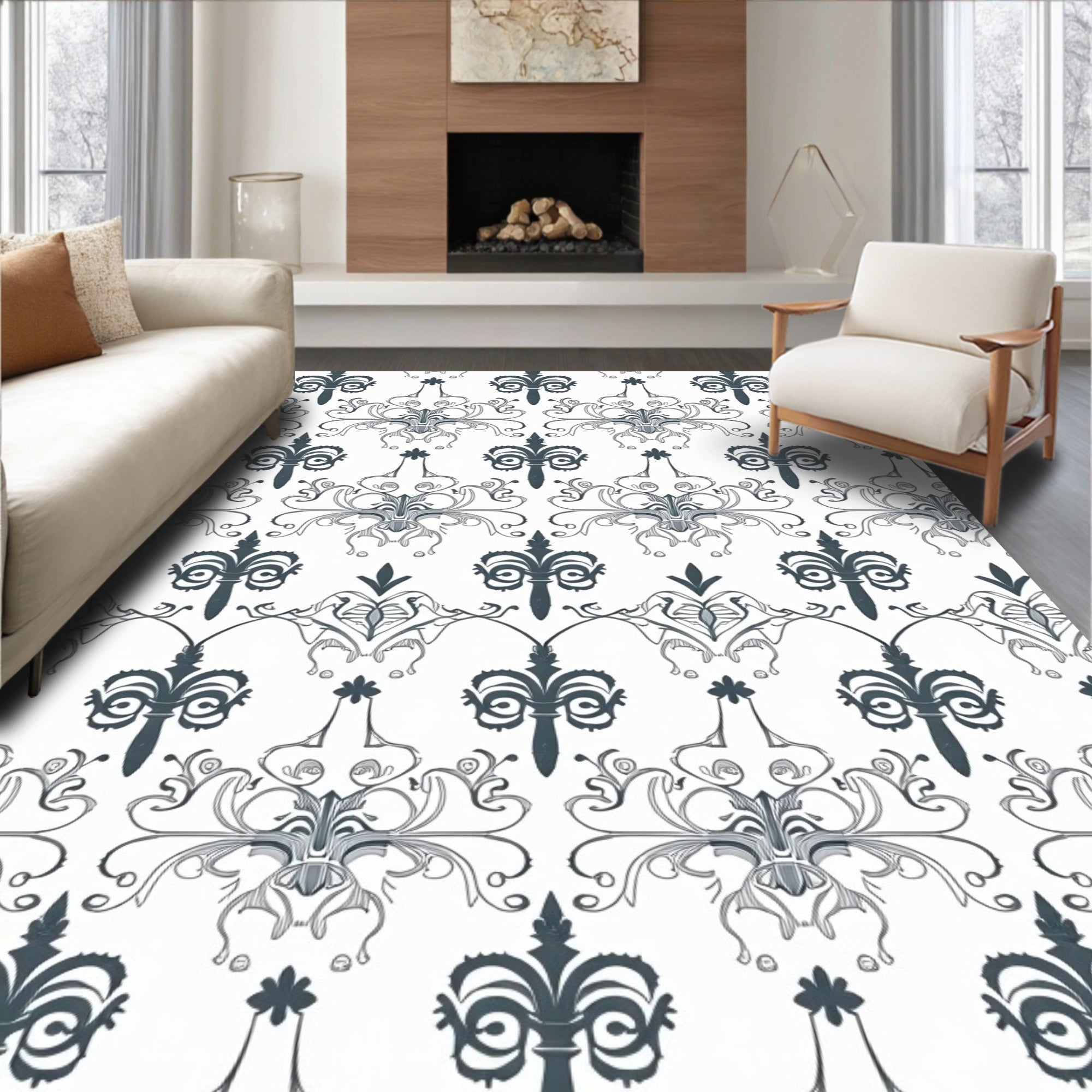 Flatwoven High Traffic Area Rug, Distressed Fleur de with Classic Floral Lace, Non Slip, Stain Resistant, Washable Area Rugs for Living Room, Bedroom (Black) Overview:
