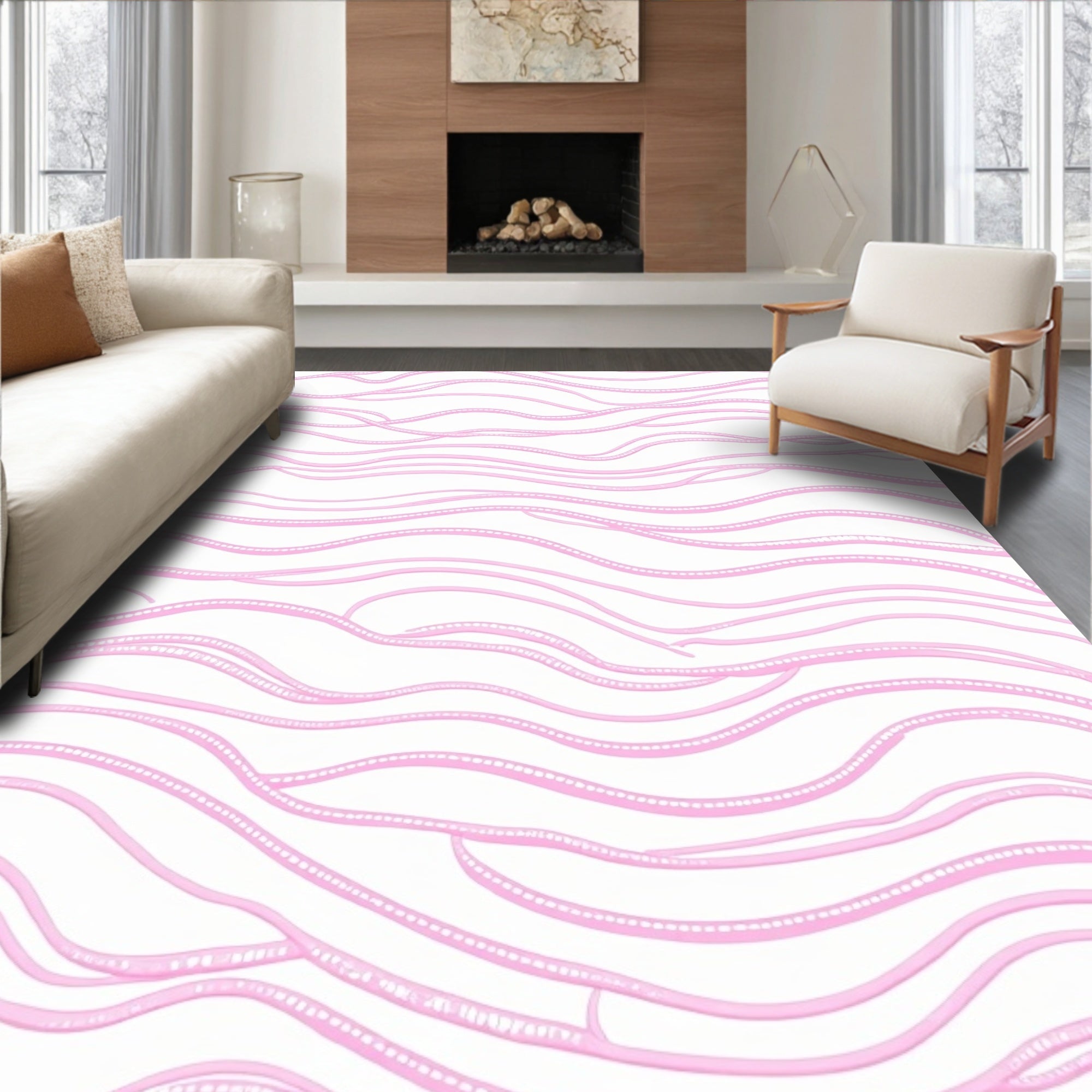 Flatwoven High Traffic Area Rug, Divine Alabaster Wave Embossed Ethereal Luxury Series, Non Slip, Stain Resistant, Washable Area Rugs for Living Room, Bedroom (Pink) Overview: