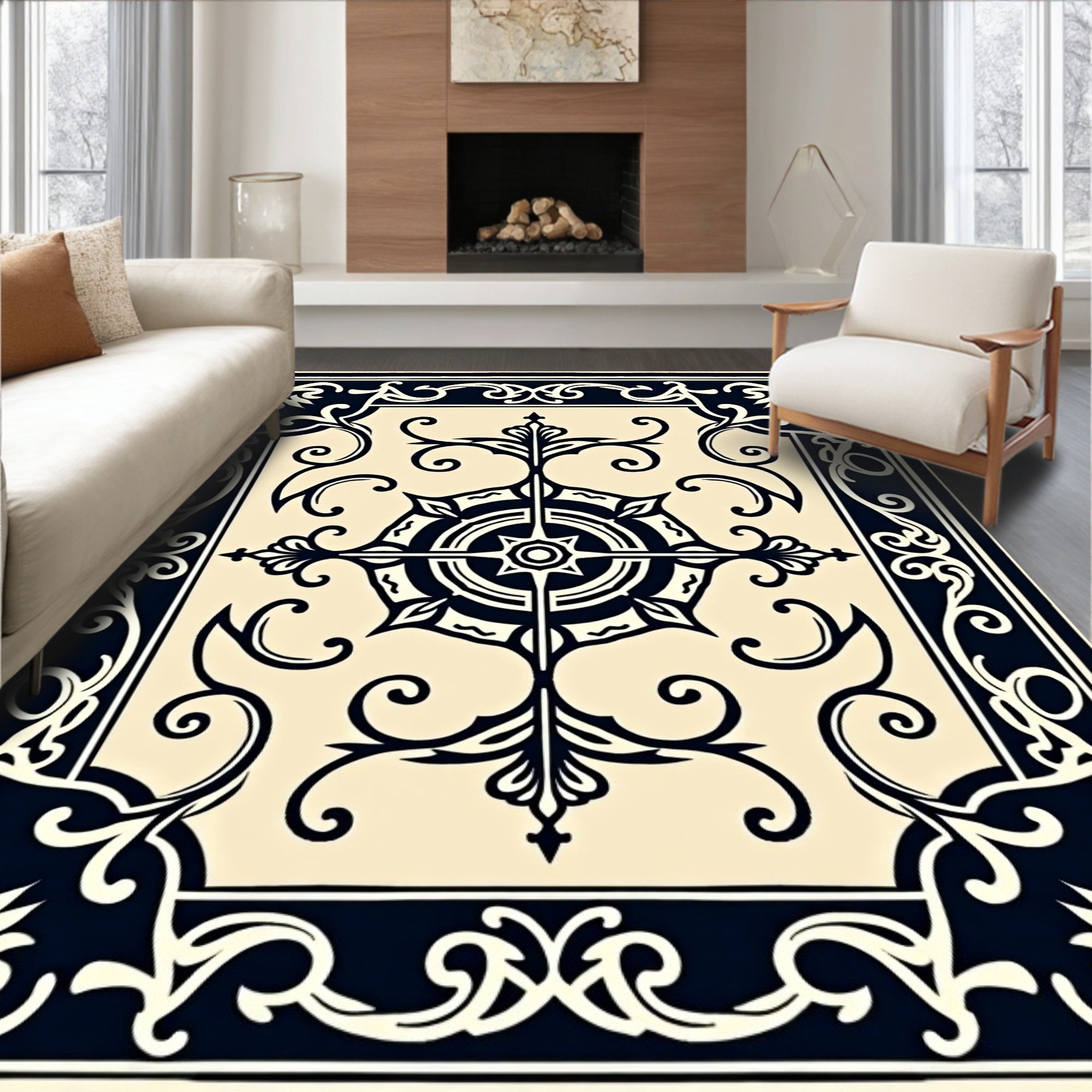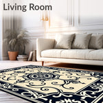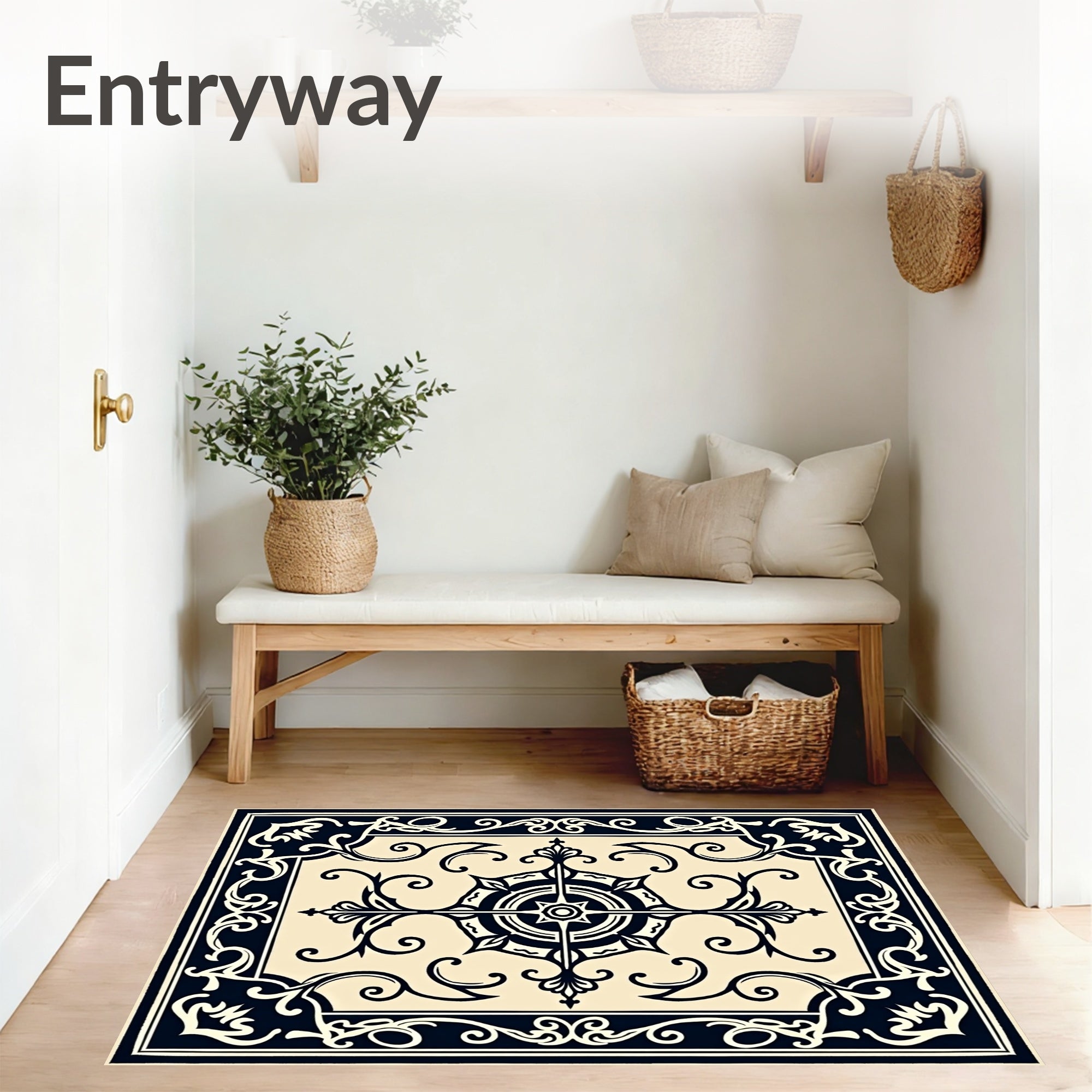 Flatwoven High Traffic Area Rug, Dynasty Ornamental Scroll Antiqued, Non Slip, Stain Resistant, Washable Area Rugs for Living Room, Bedroom (Beige) Overview: