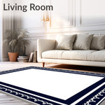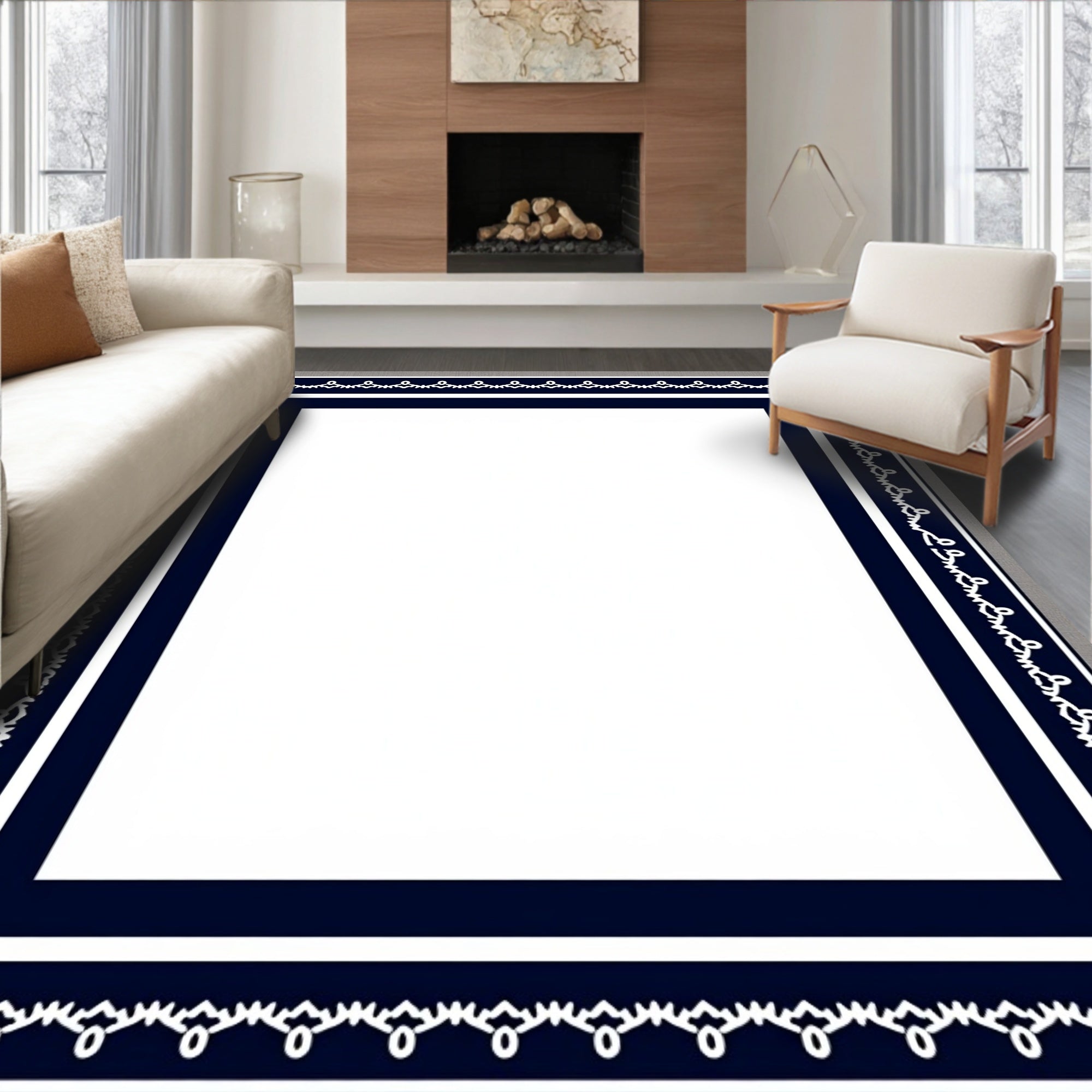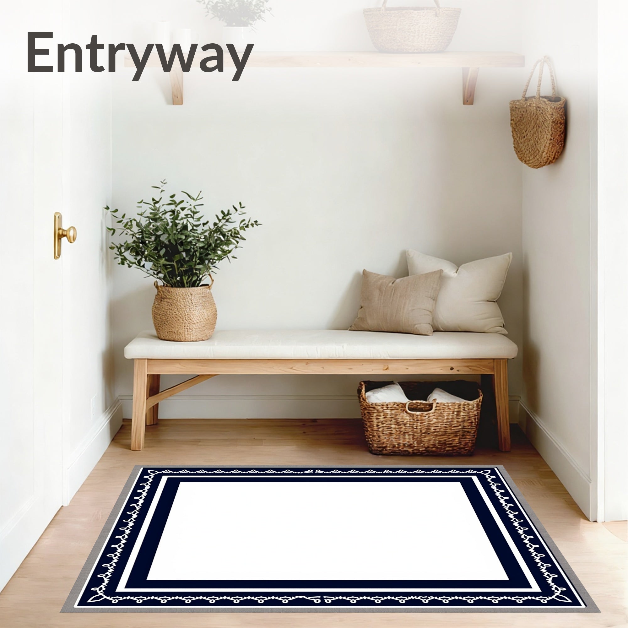 Flatwoven High Traffic Area Rug, Elegant Border Pathway Collection With Symmetrical Interlocking Design, Non Slip, Stain Resistant, Washable Area Rugs for Living Room, Bedroom (Blue) Overview: