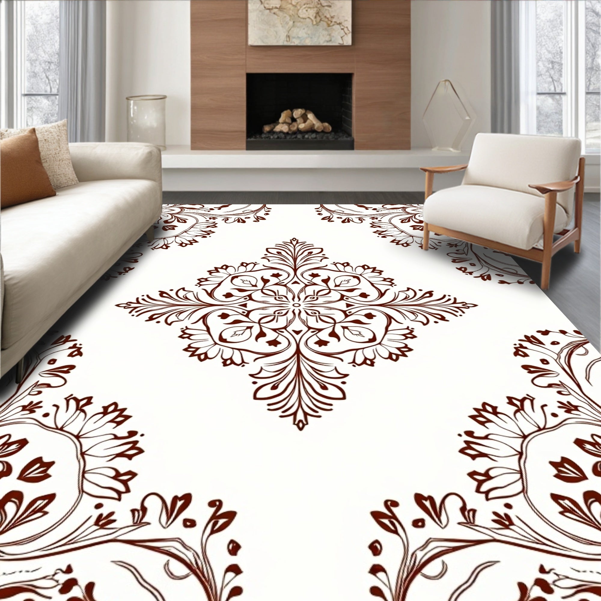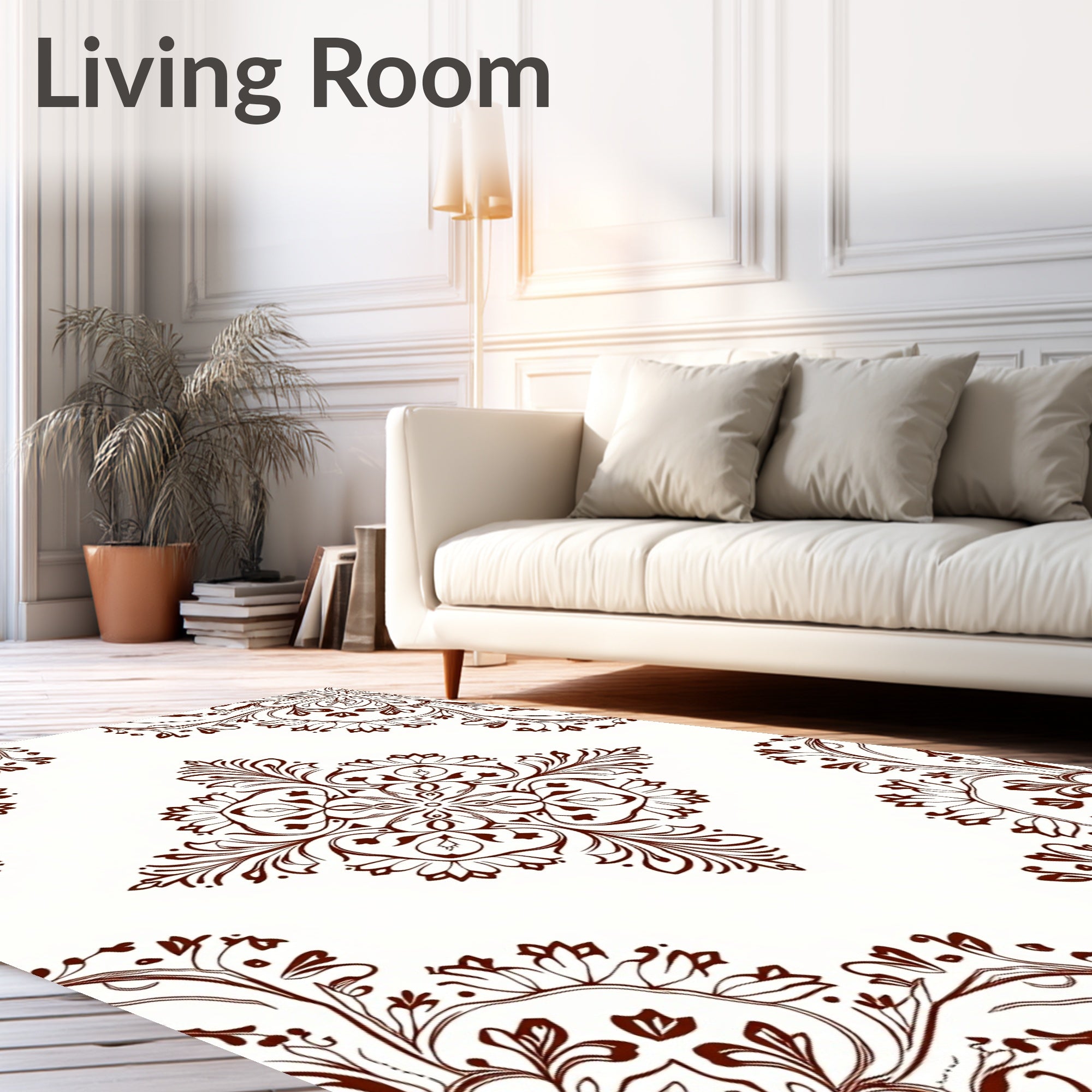 Flatwoven High Traffic Area Rug, Elegant Botanical Tapestry Artisan, Non Slip, Stain Resistant, Washable Area Rugs for Living Room, Bedroom (Brown) Overview: