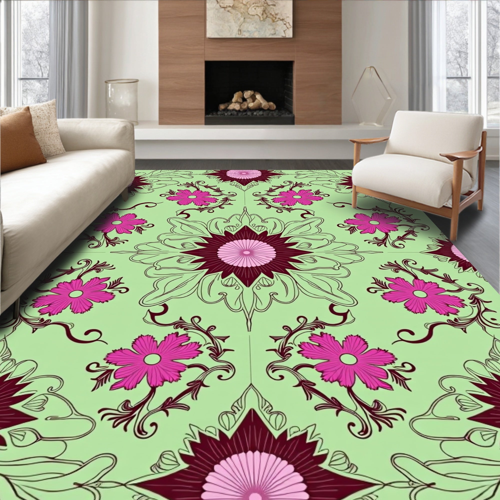Flatwoven High Traffic Area Rug, Elegant Damask Blossom with Intricate Vine Motifs, Non Slip, Stain Resistant, Washable Area Rugs for Living Room, Bedroom (Green) Overview: