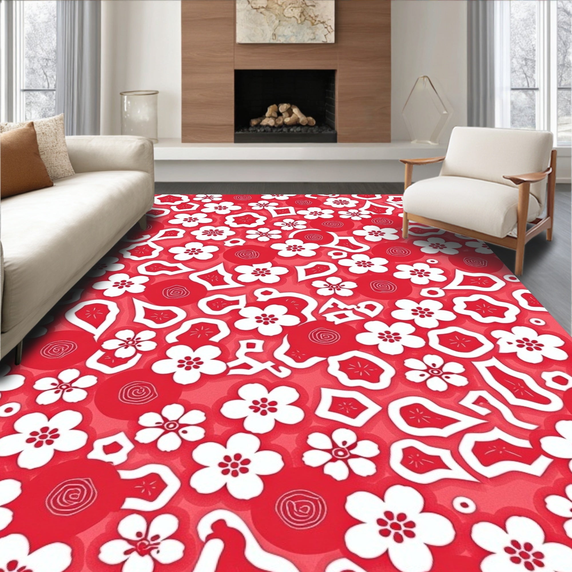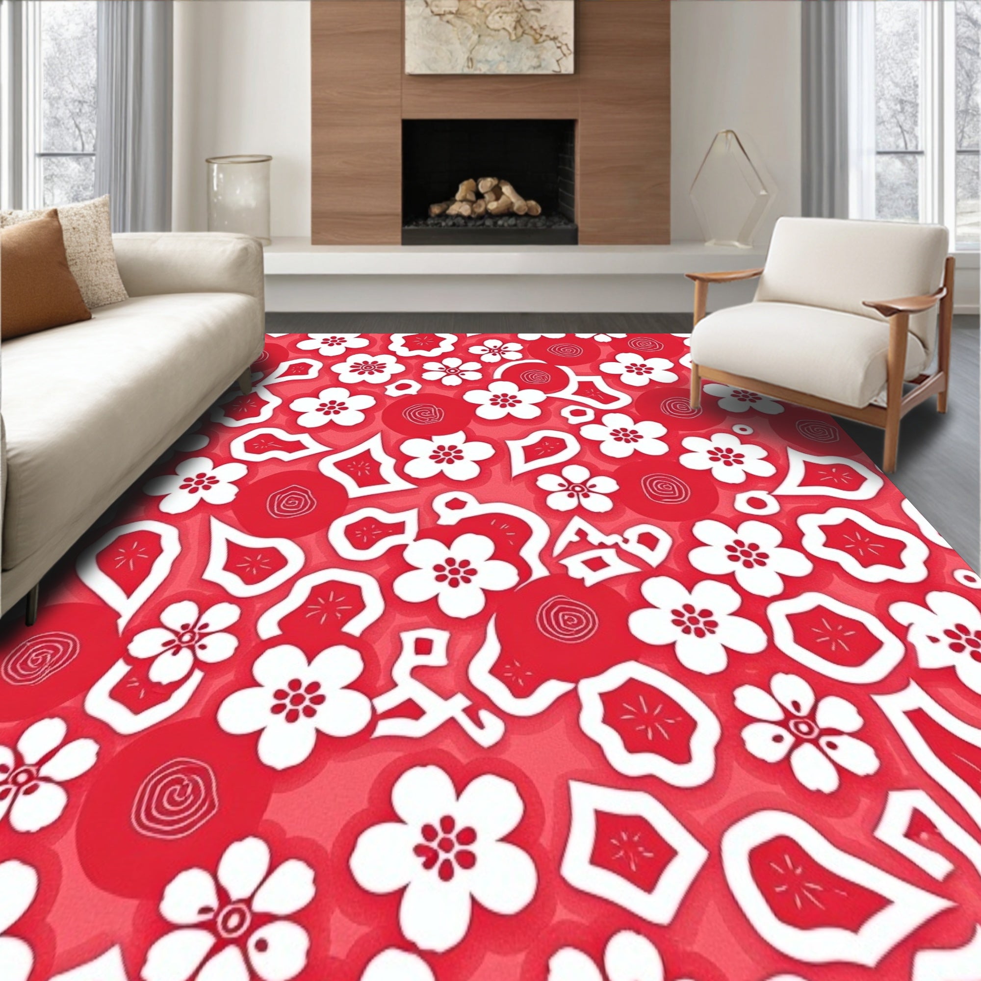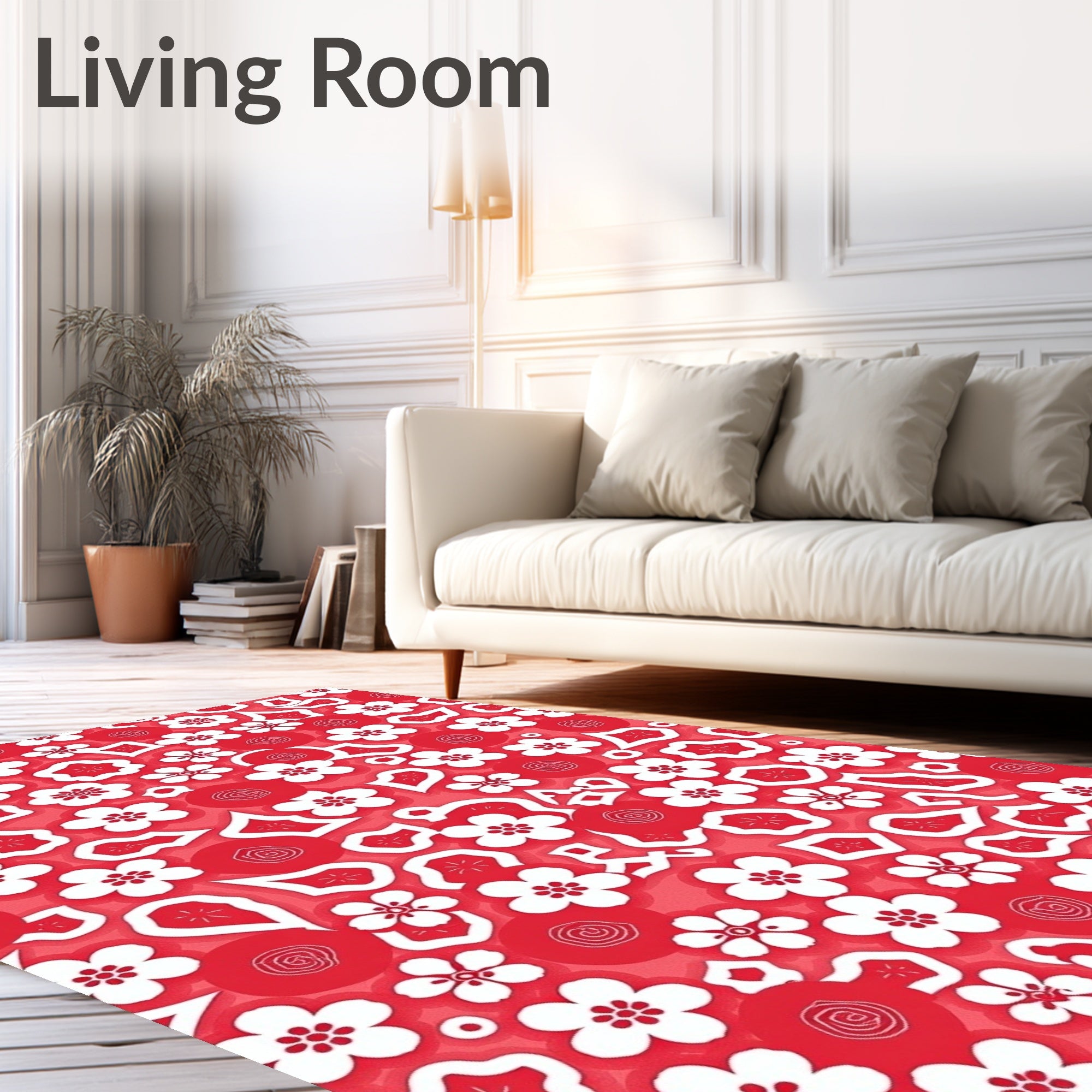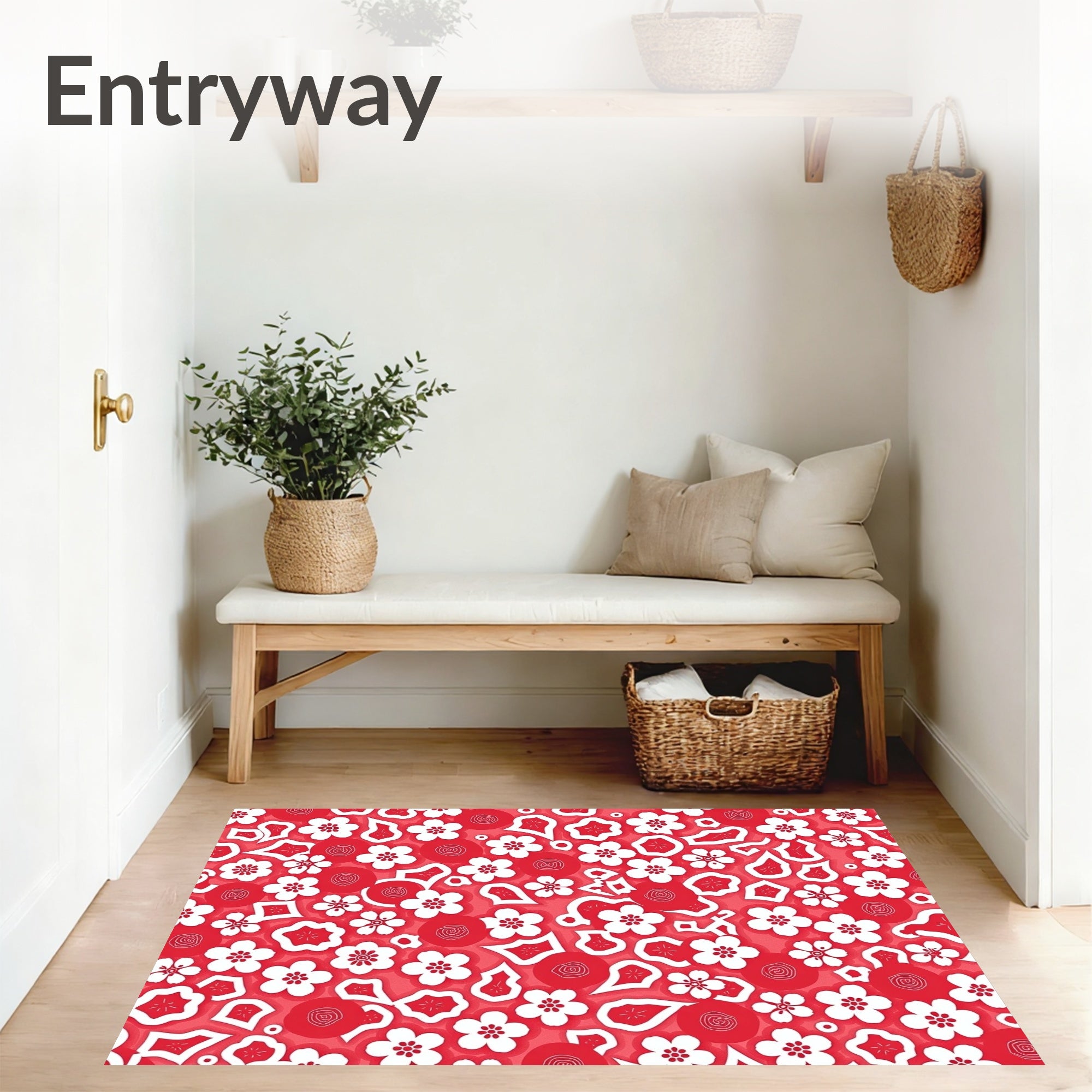 Flatwoven High Traffic Area Rug, Elegant Floral Blossom Abstract, Non Slip, Stain Resistant, Washable Area Rugs for Living Room, Bedroom (Red) Overview: