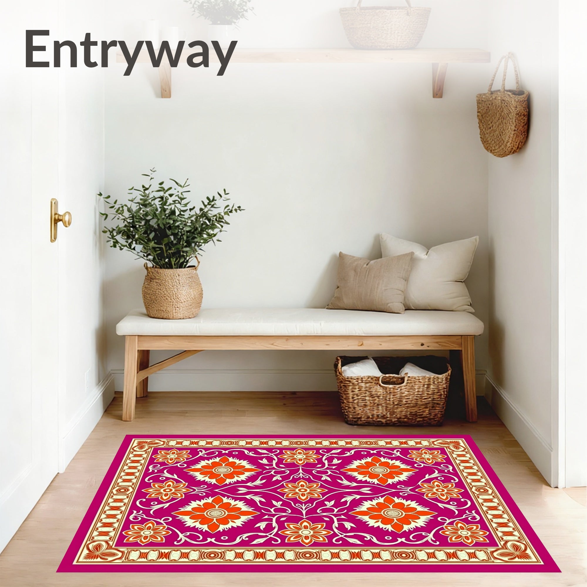 Flatwoven High Traffic Area Rug, Elegant Floral Medallion with Layered Petal and Vine, Non Slip, Stain Resistant, Washable Area Rugs for Living Room, Bedroom (Pink) Overview: