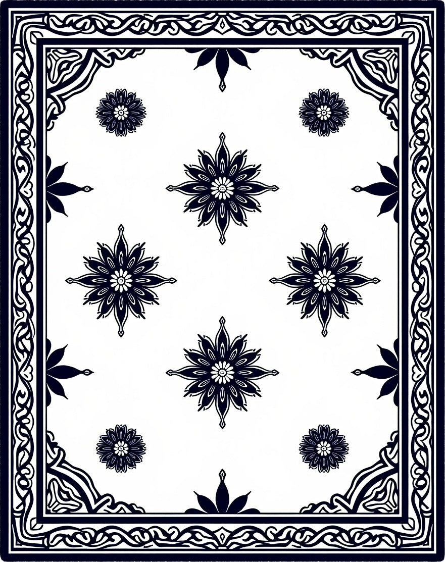 Elegant Interlocking Medallion Border With Symmetrical Floral Motifs (Black)