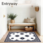 Flatwoven High Traffic Area Rug, Elegant Interlocking Medallion Border With Symmetrical Floral Motifs, Non Slip, Stain Resistant, Washable Area Rugs for Living Room, Bedroom (Black) Overview: