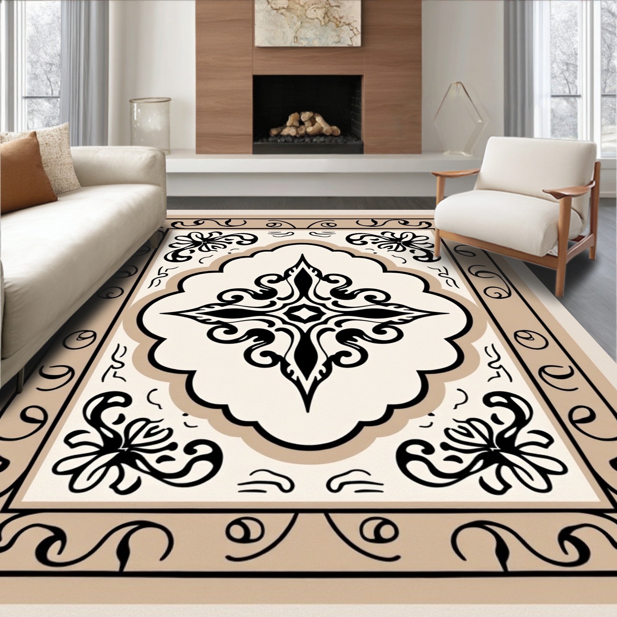 Flatwoven High Traffic Area Rug, Elegant Transitional Damask Swirl Decorative Ornate, Non Slip, Stain Resistant, Washable Area Rugs for Living Room, Bedroom (Beige) Overview: