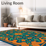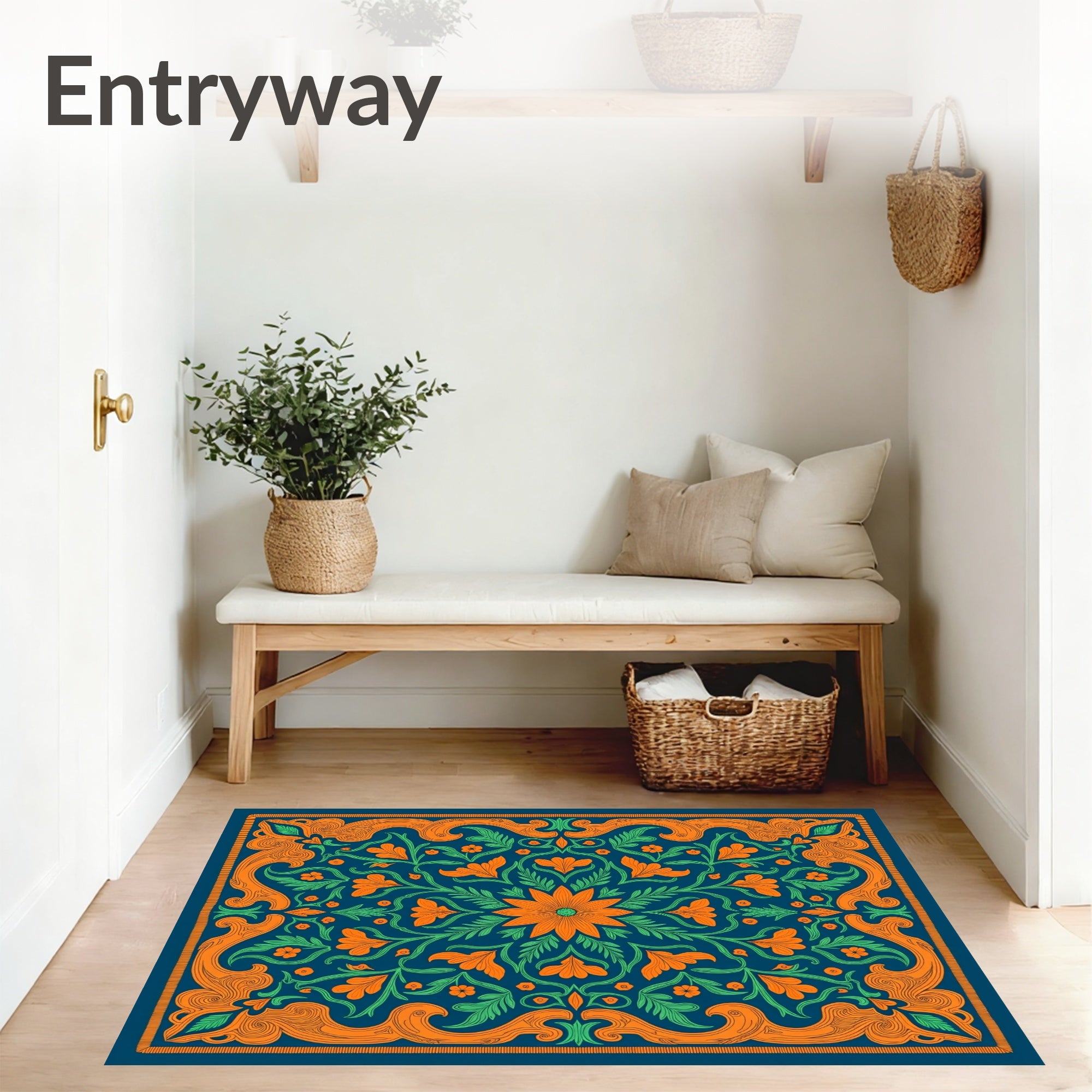 Flatwoven High Traffic Area Rug, Elegant Victorian Floral Scroll with Detailed Leaf and Flower Accents, Non Slip, Stain Resistant, Washable Area Rugs for Living Room, Bedroom (Blue) Overview: