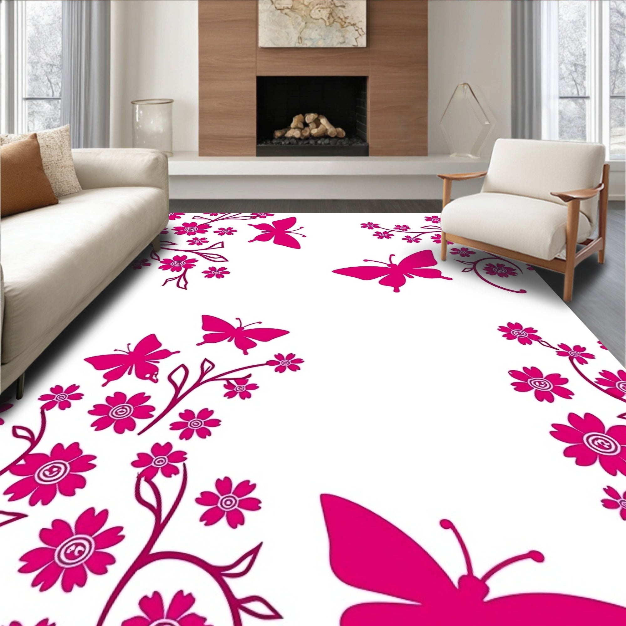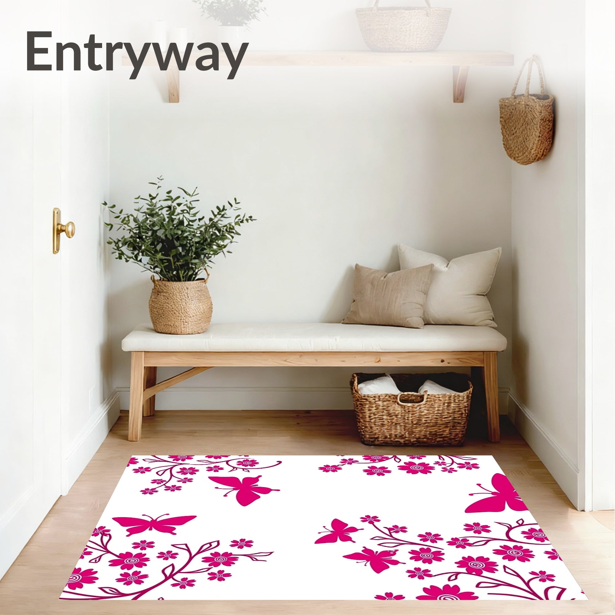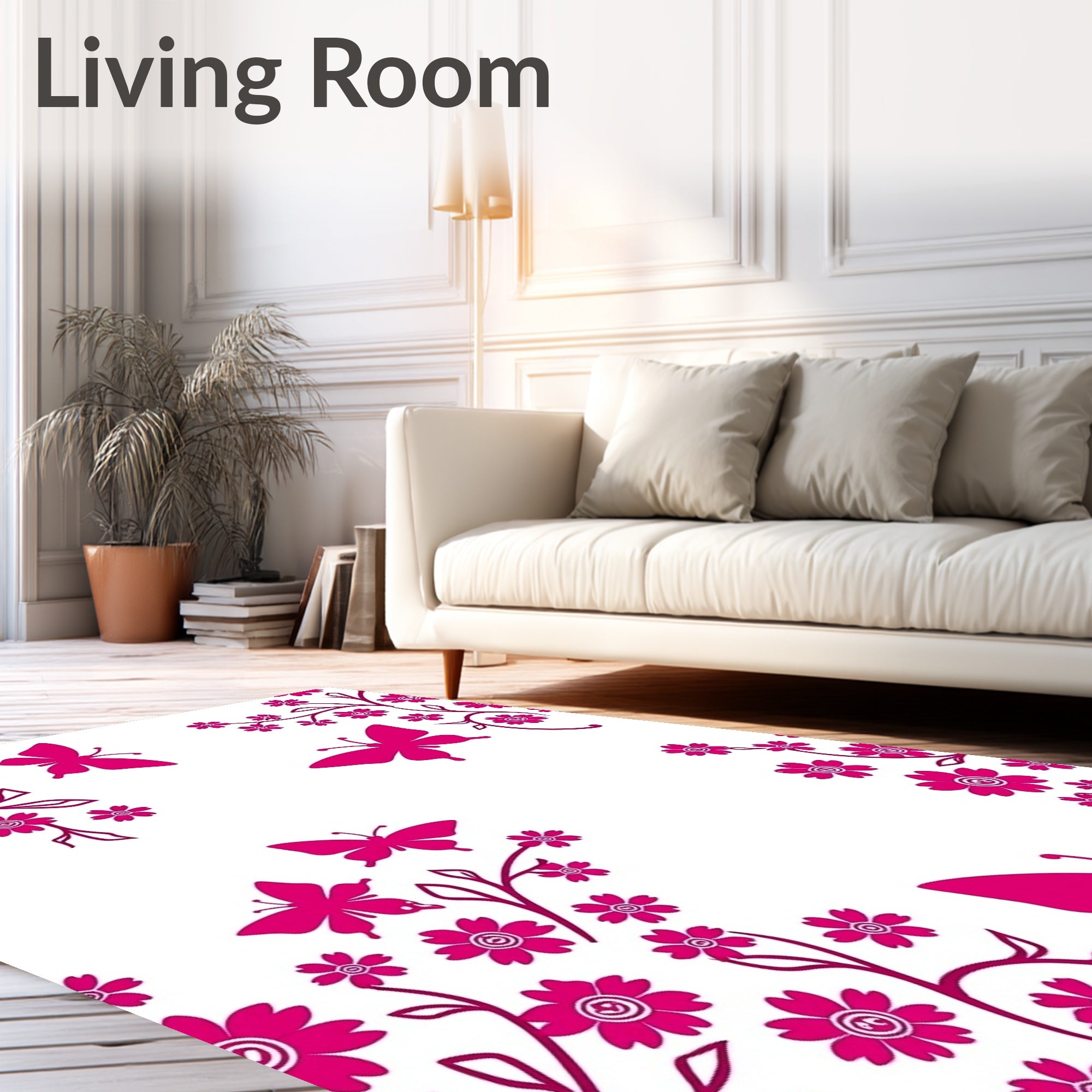 Flatwoven High Traffic Area Rug, Enchanted Garden Cascade Design with Floral Accents, Non Slip, Stain Resistant, Washable Area Rugs for Living Room, Bedroom (Pink) Overview: