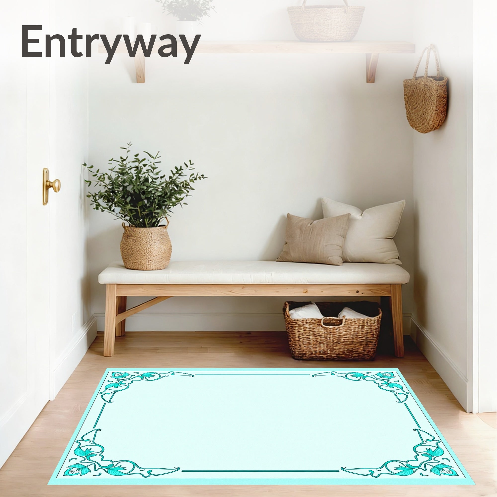 Flatwoven High Traffic Area Rug, Enchanted Garden Vine Botanical Swirl Ethereal Dreamy, Non Slip, Stain Resistant, Washable Area Rugs for Living Room, Bedroom (Blue) Overview: