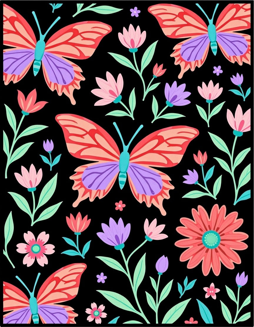 Enchanted Garden with Blooming Florals Design (Black)