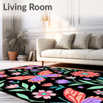 Flatwoven High Traffic Area Rug, Enchanted Garden with Blooming Florals Design, Non Slip, Stain Resistant, Washable Area Rugs for Living Room, Bedroom (Black) Overview: