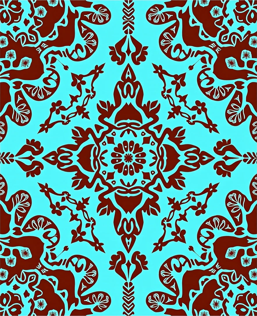 Enchanted Meadow Floral Symmetrical Interlocking Medallion Design (Brown)