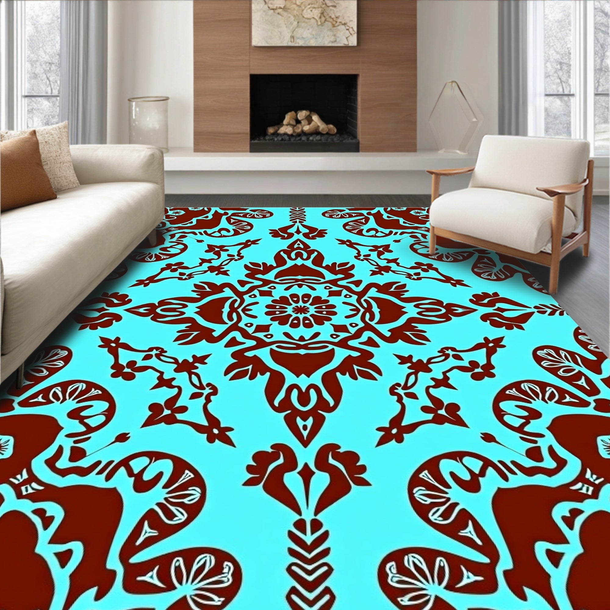 Flatwoven High Traffic Area Rug, Enchanted Meadow Floral Symmetrical Interlocking Medallion Design, Non Slip, Stain Resistant, Washable Area Rugs for Living Room, Bedroom (Brown) Overview: