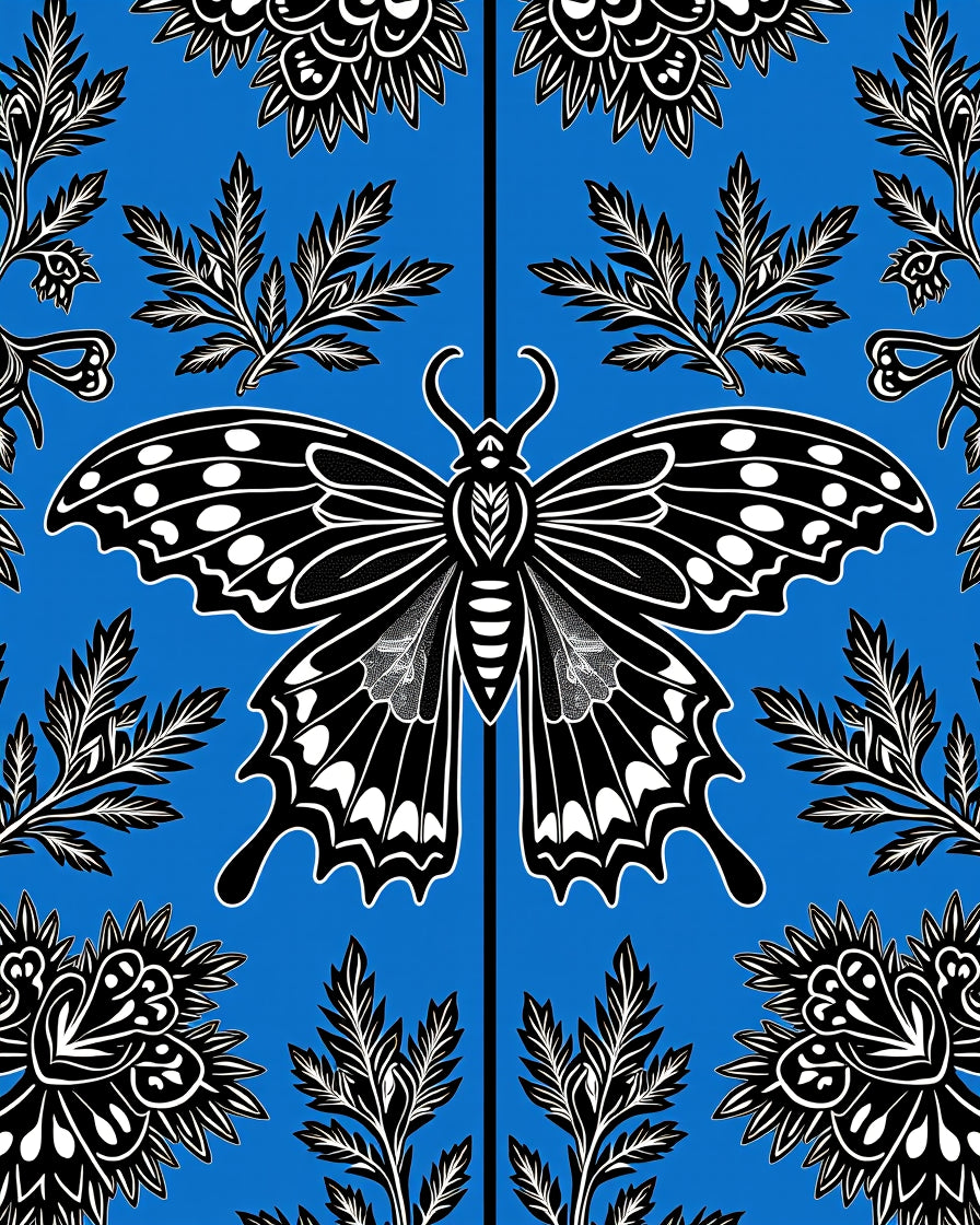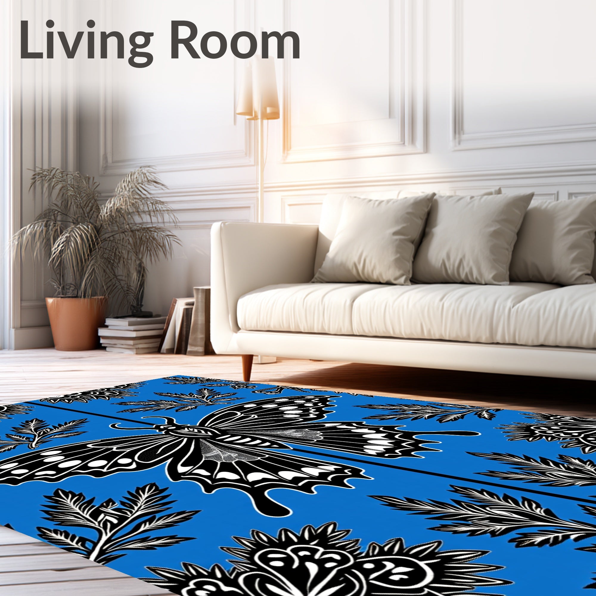 Flatwoven High Traffic Area Rug, Enchanted Moth Wings with Mystical Floral Accents, Non Slip, Stain Resistant, Washable Area Rugs for Living Room, Bedroom (Blue) Overview: