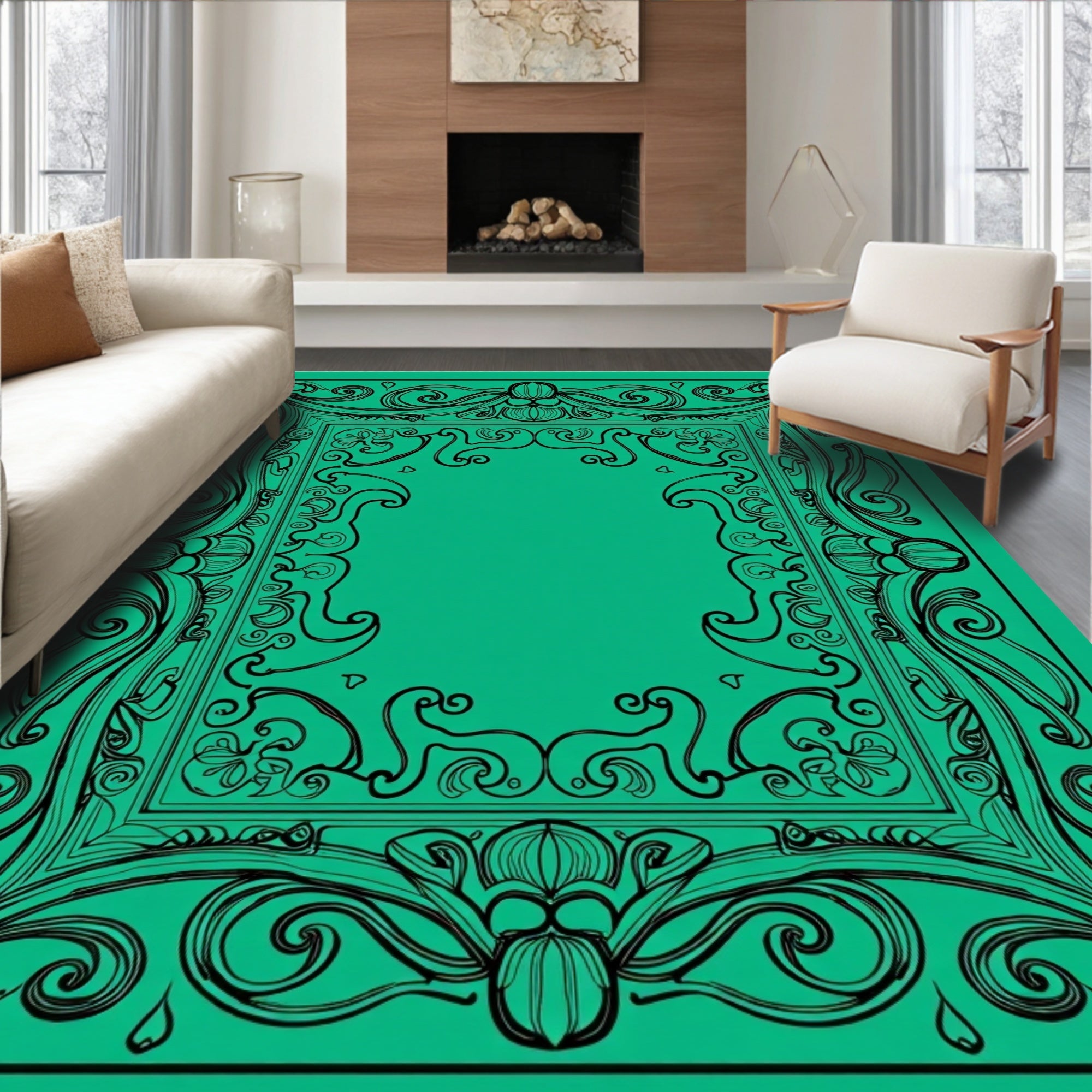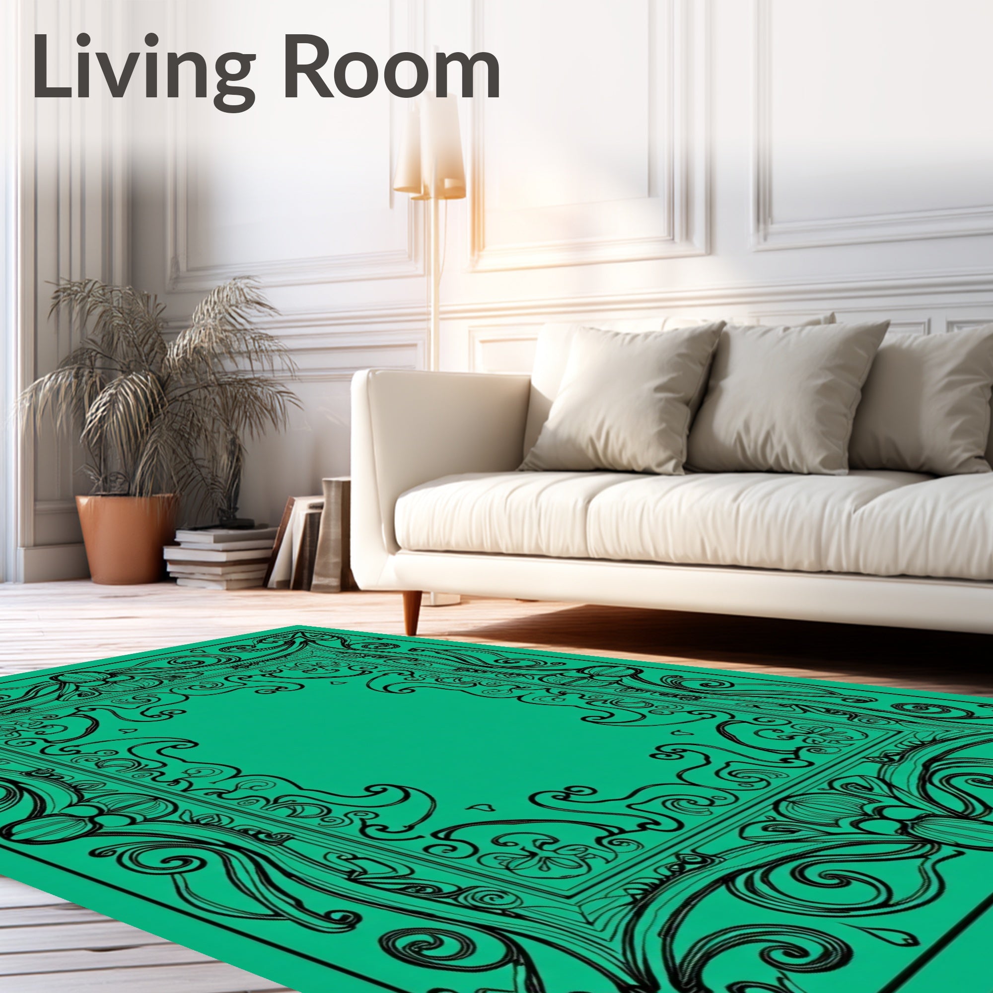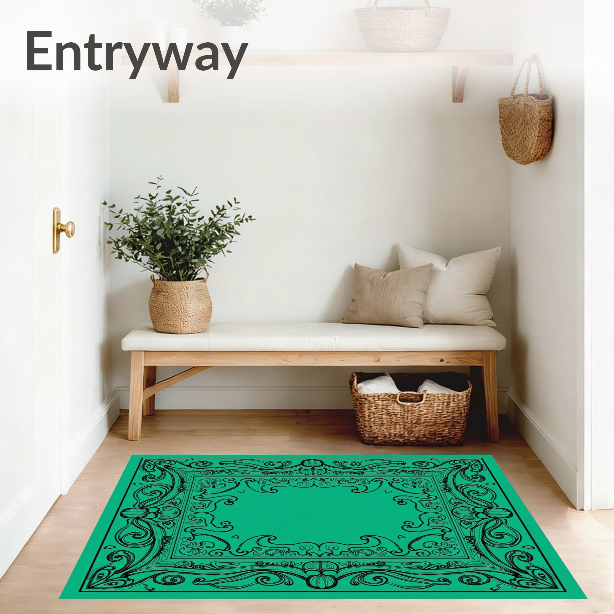Flatwoven High Traffic Area Rug, Enchanted Vine Botanical Medallion Tapestry, Non Slip, Stain Resistant, Washable Area Rugs for Living Room, Bedroom (Green) Overview: