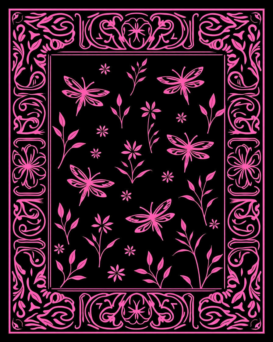 Ethereal Winged Creature Botanical Dreamscape Artistic Wonderland (Black)