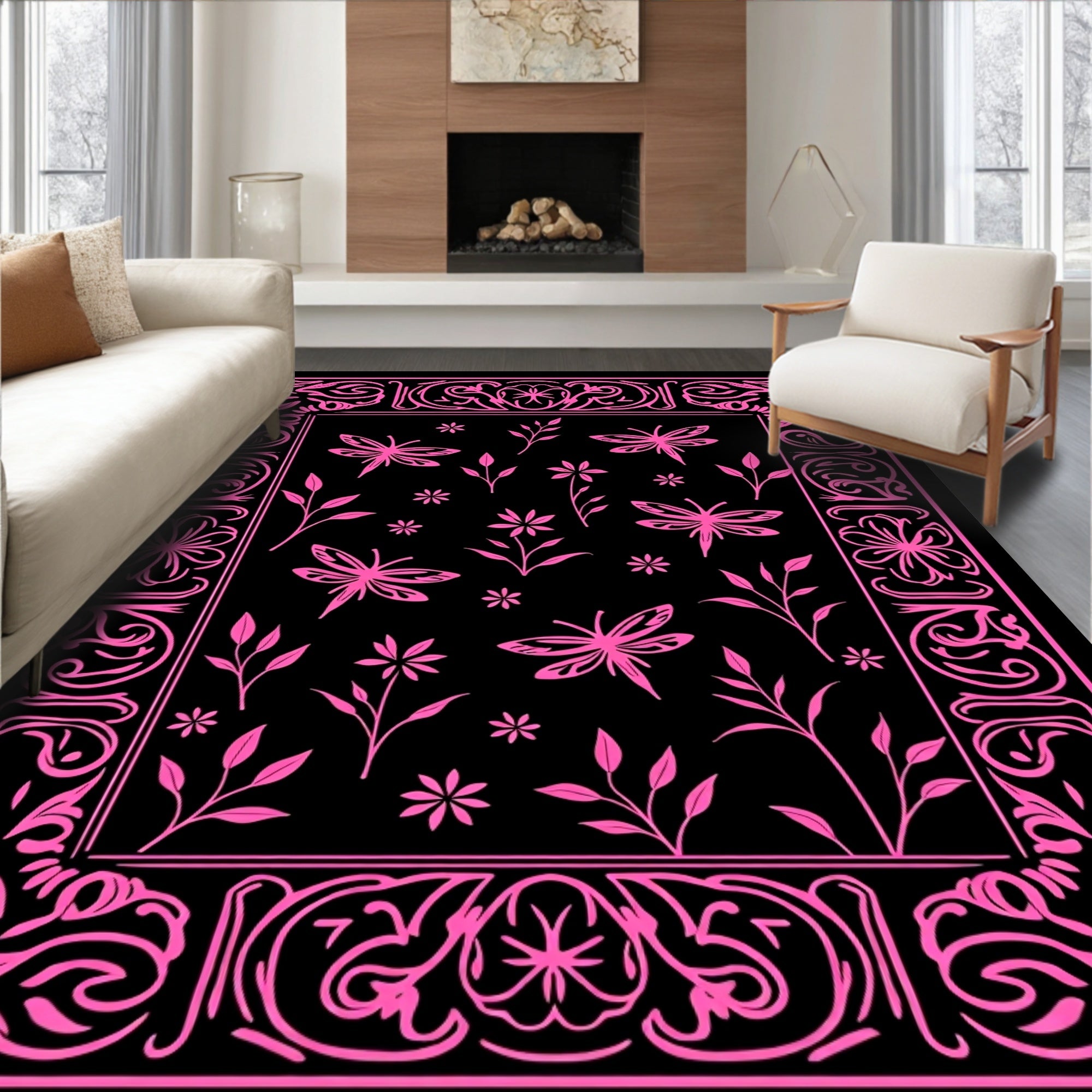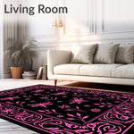 Flatwoven High Traffic Area Rug, Ethereal Winged Creature Botanical Dreamscape Artistic Wonderland, Non Slip, Stain Resistant, Washable Area Rugs for Living Room, Bedroom (Black) Overview: