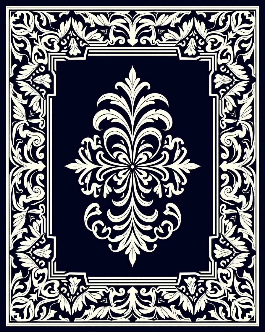Flatwoven High Traffic Area Rug, Exquisite Damask With Flourishing Garden, Non Slip, Stain Resistant, Washable Area Rugs for Living Room, Bedroom (Black) Overview: