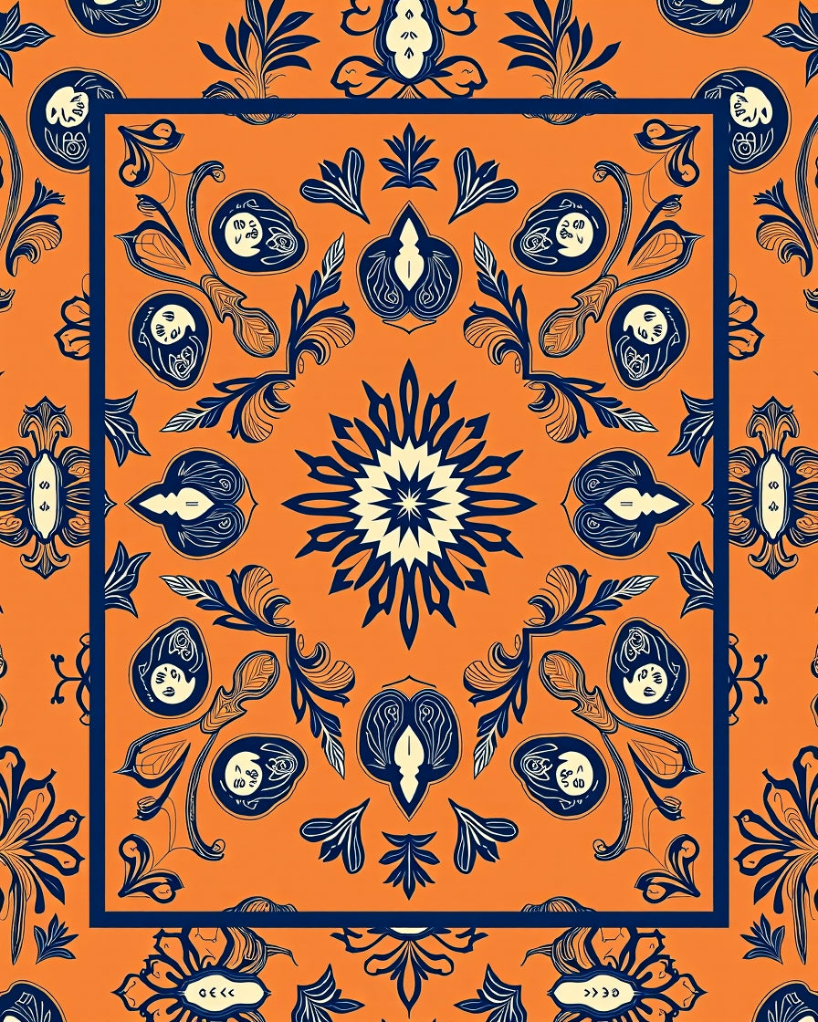 Floral Distressed with Ornamental Leaf Filigree (Orange)
