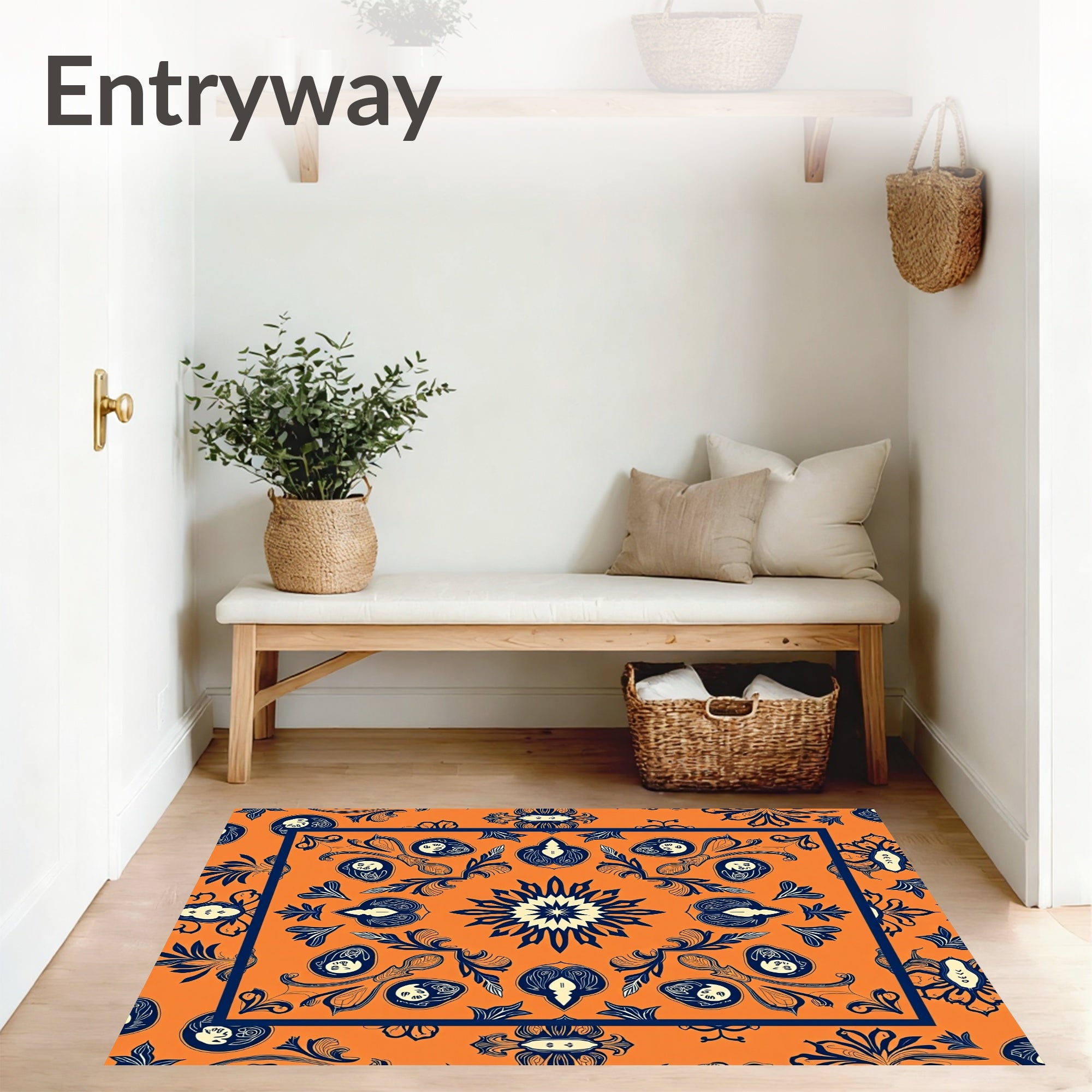 Flatwoven High Traffic Area Rug, Floral Distressed with Ornamental Leaf Filigree, Non Slip, Stain Resistant, Washable Area Rugs for Living Room, Bedroom (Orange) Overview: