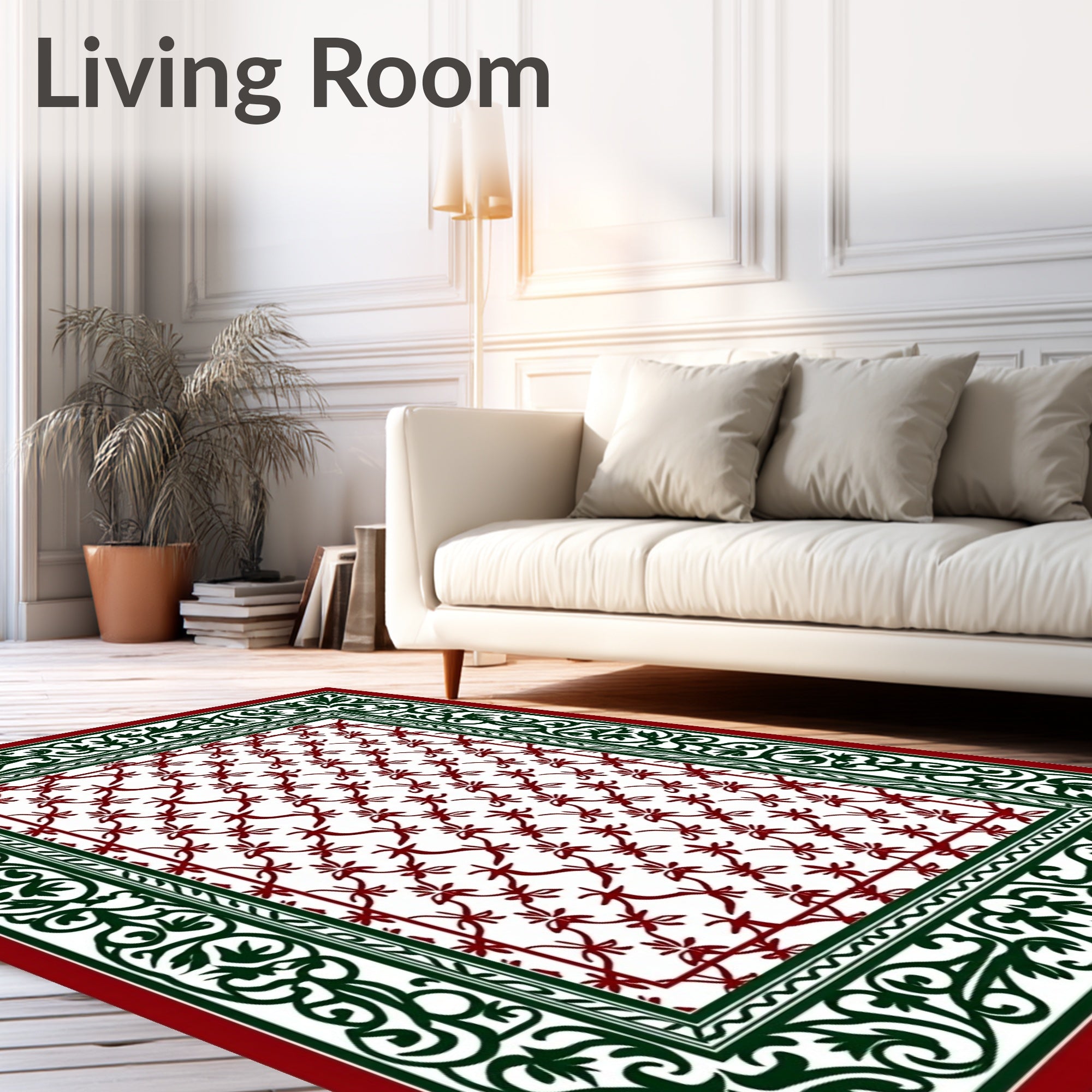 Flatwoven High Traffic Area Rug, Floral Trellis Featuring Detailed Leaf And Interlocking Scrollwork, Non Slip, Stain Resistant, Washable Area Rugs for Living Room, Bedroom (Red) Overview: