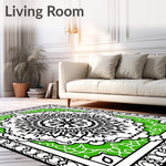 Flatwoven High Traffic Area Rug, Floral with Interlocking Petal and Vine, Non Slip, Stain Resistant, Washable Area Rugs for Living Room, Bedroom (Green) Overview: