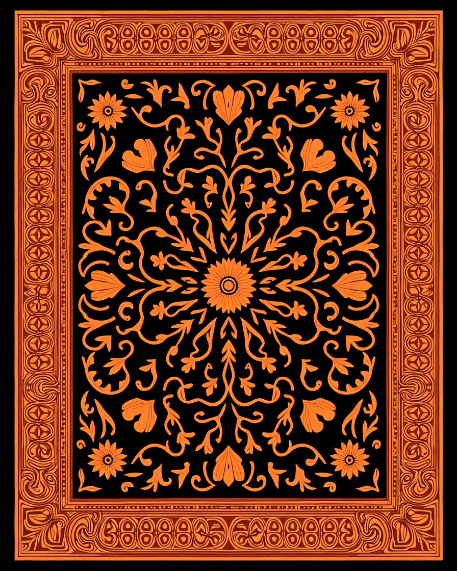 Flower Garden with Swirling Vine (Black)