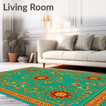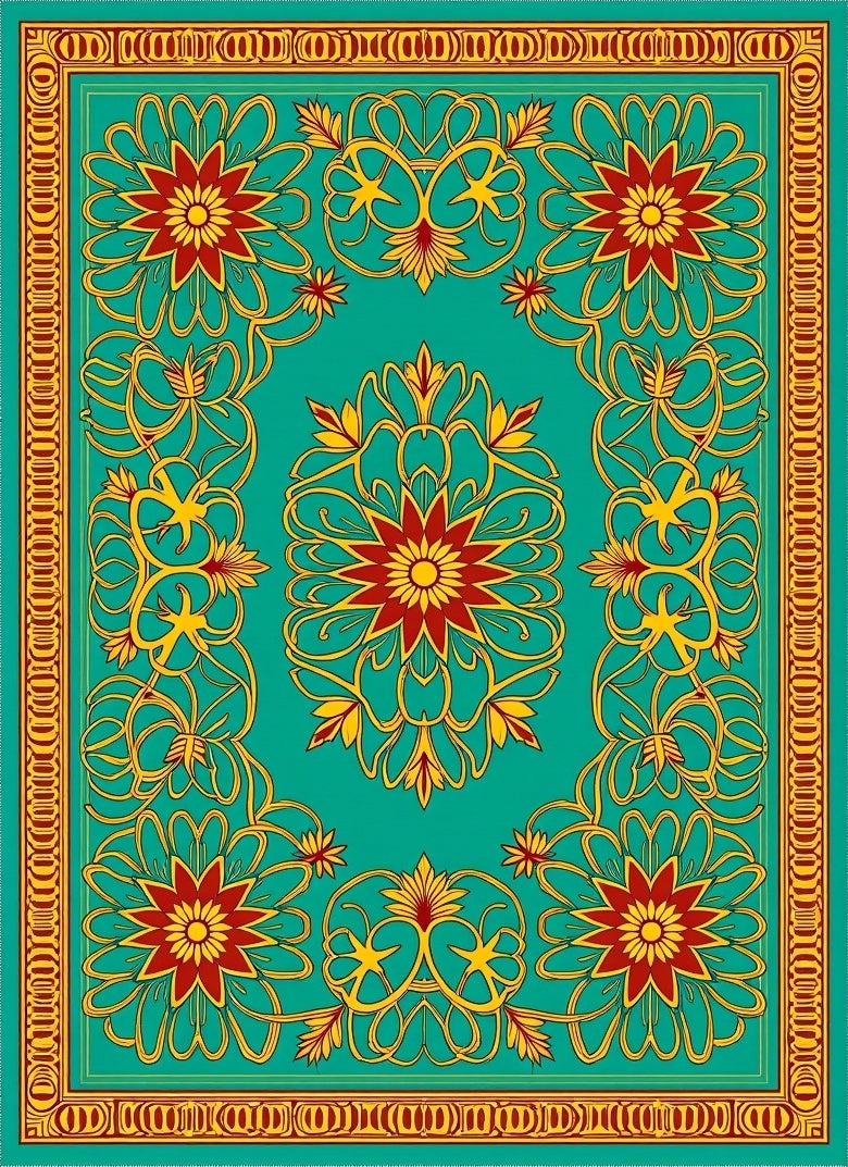 Flatwoven High Traffic Area Rug, Folk Art Floral Fantasy with Interlocking Petals and, Non Slip, Stain Resistant, Washable Area Rugs for Living Room, Bedroom (Turquoise) Overview: