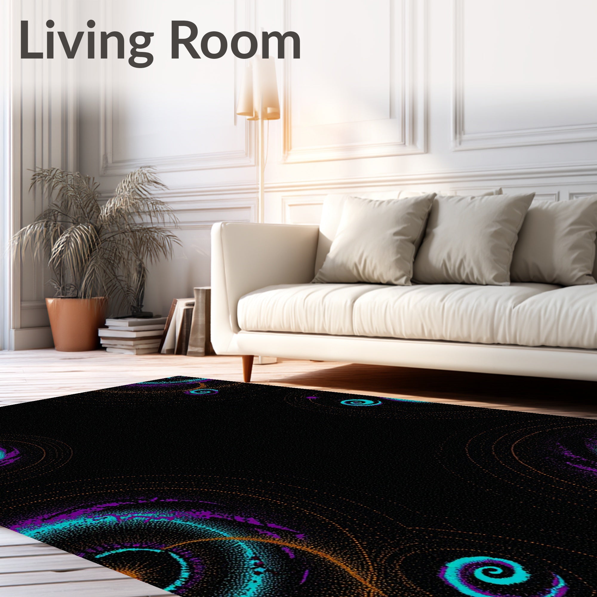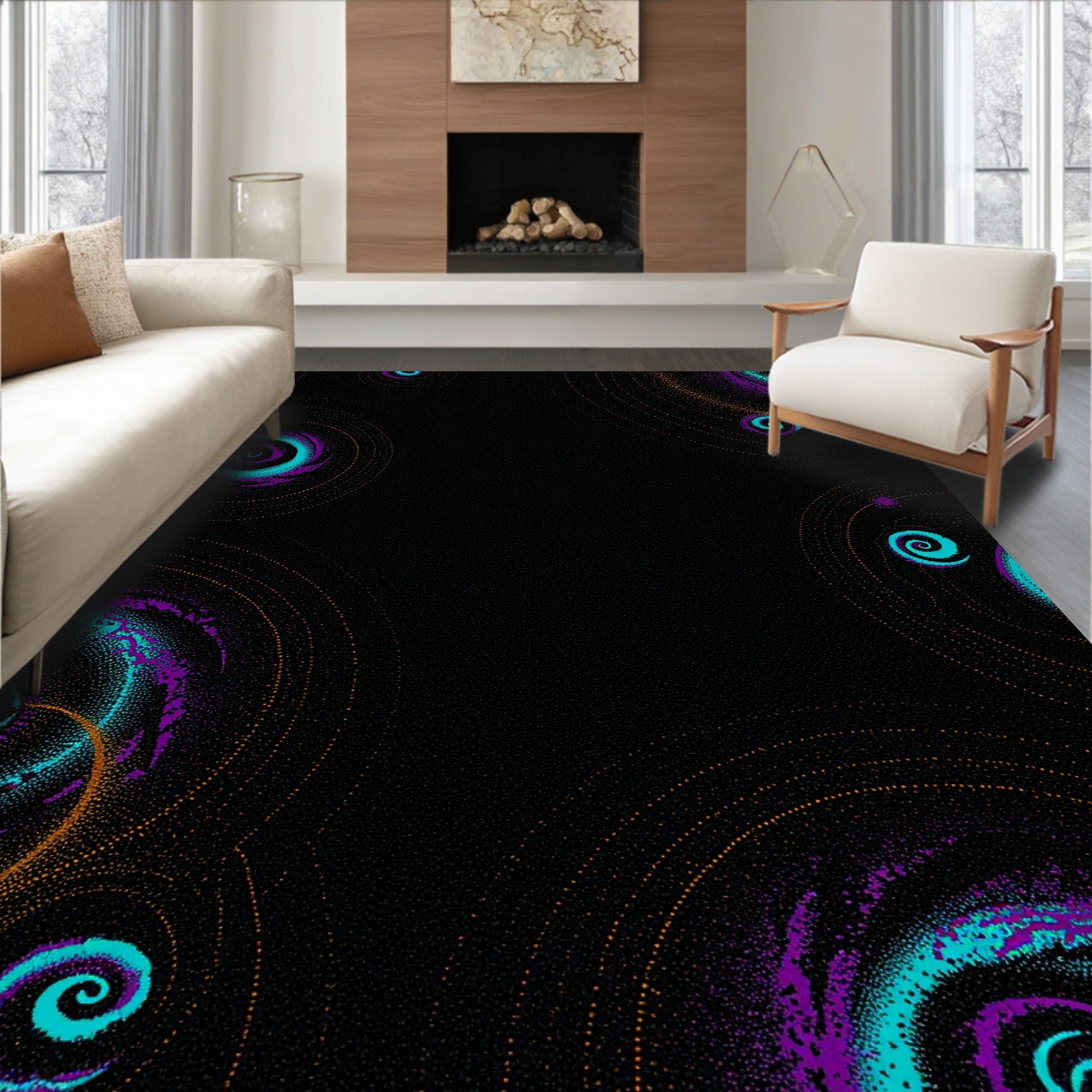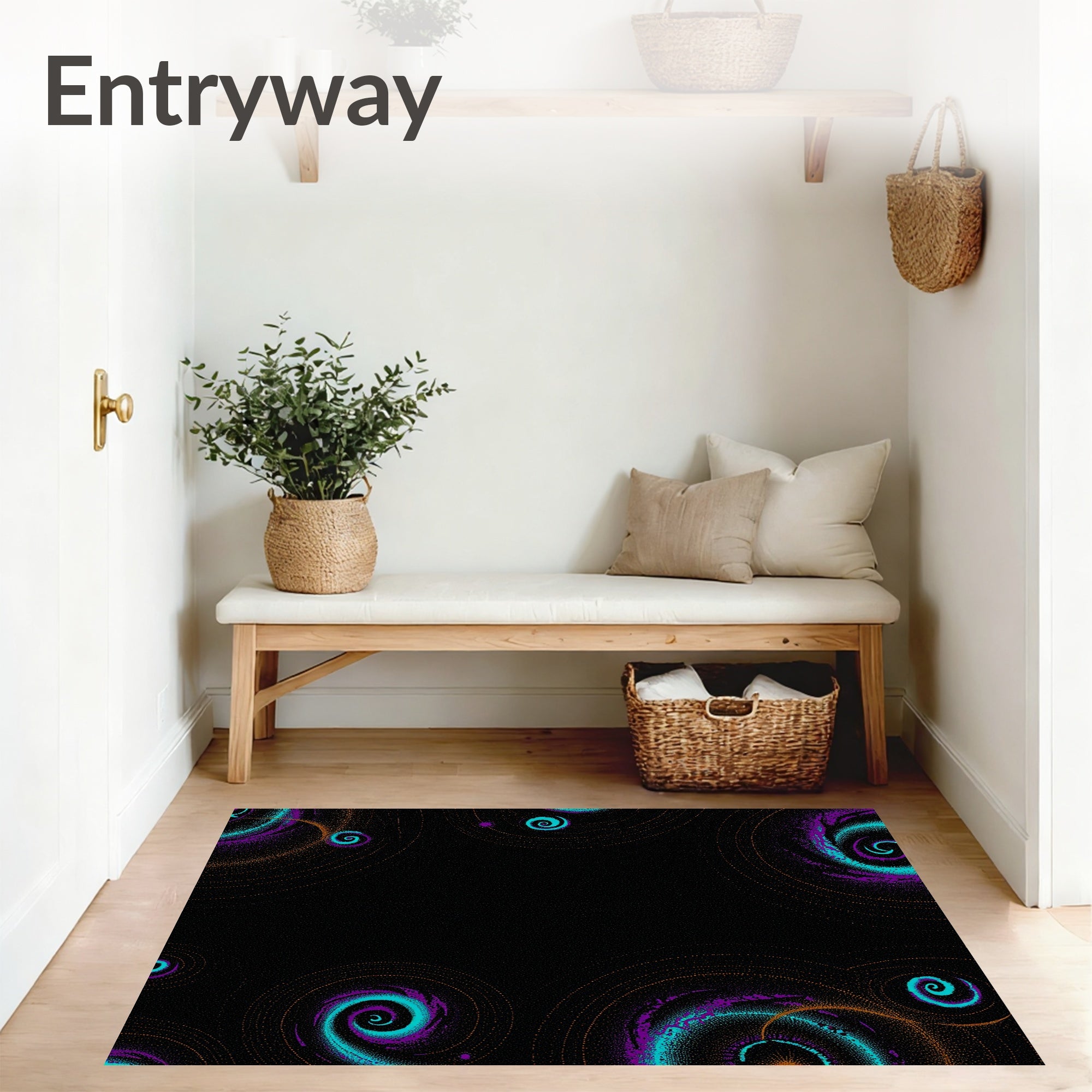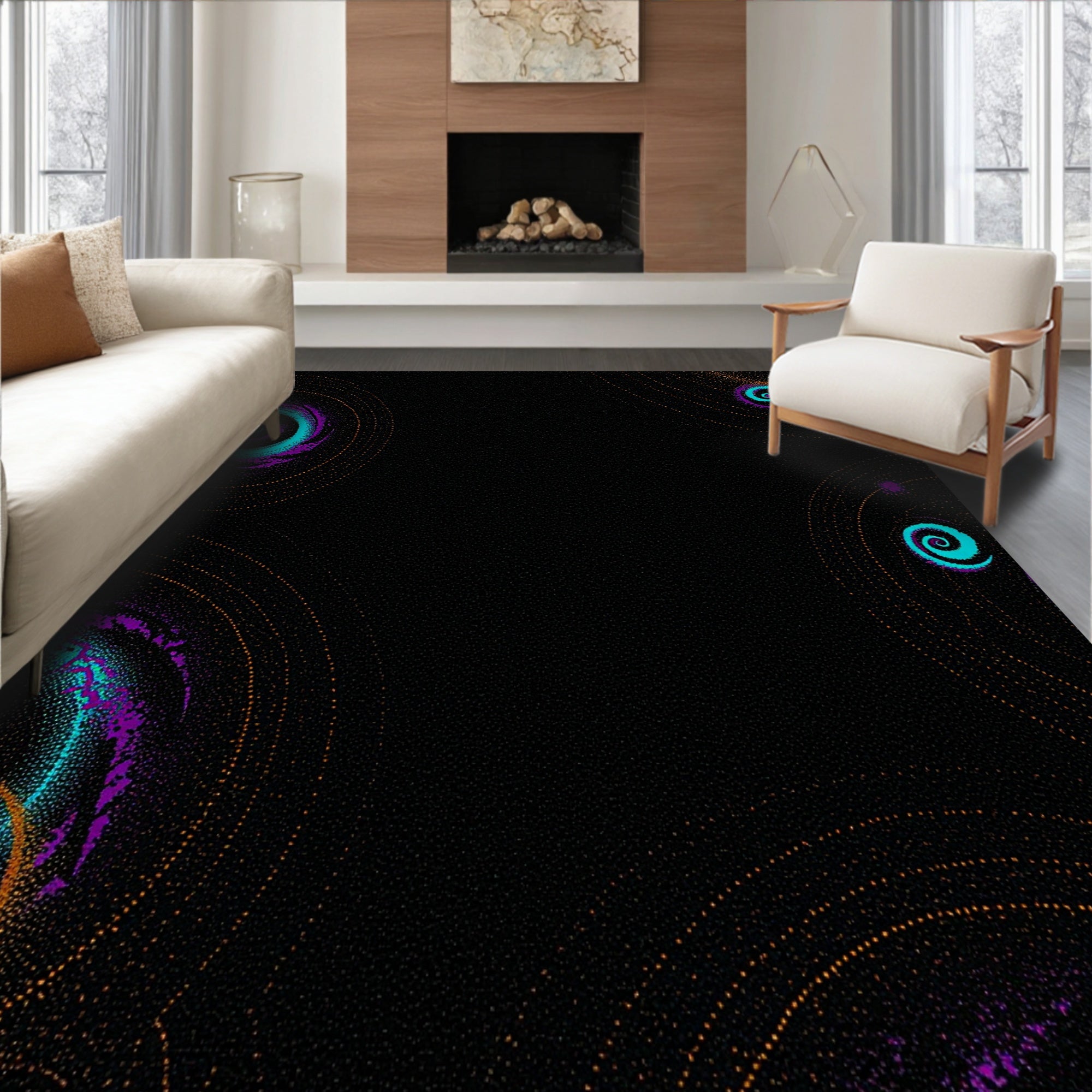 Flatwoven High Traffic Area Rug, Galactic Voyage Astral Exploration Pathway, Non Slip, Stain Resistant, Washable Area Rugs for Living Room, Bedroom (Black) Overview:
