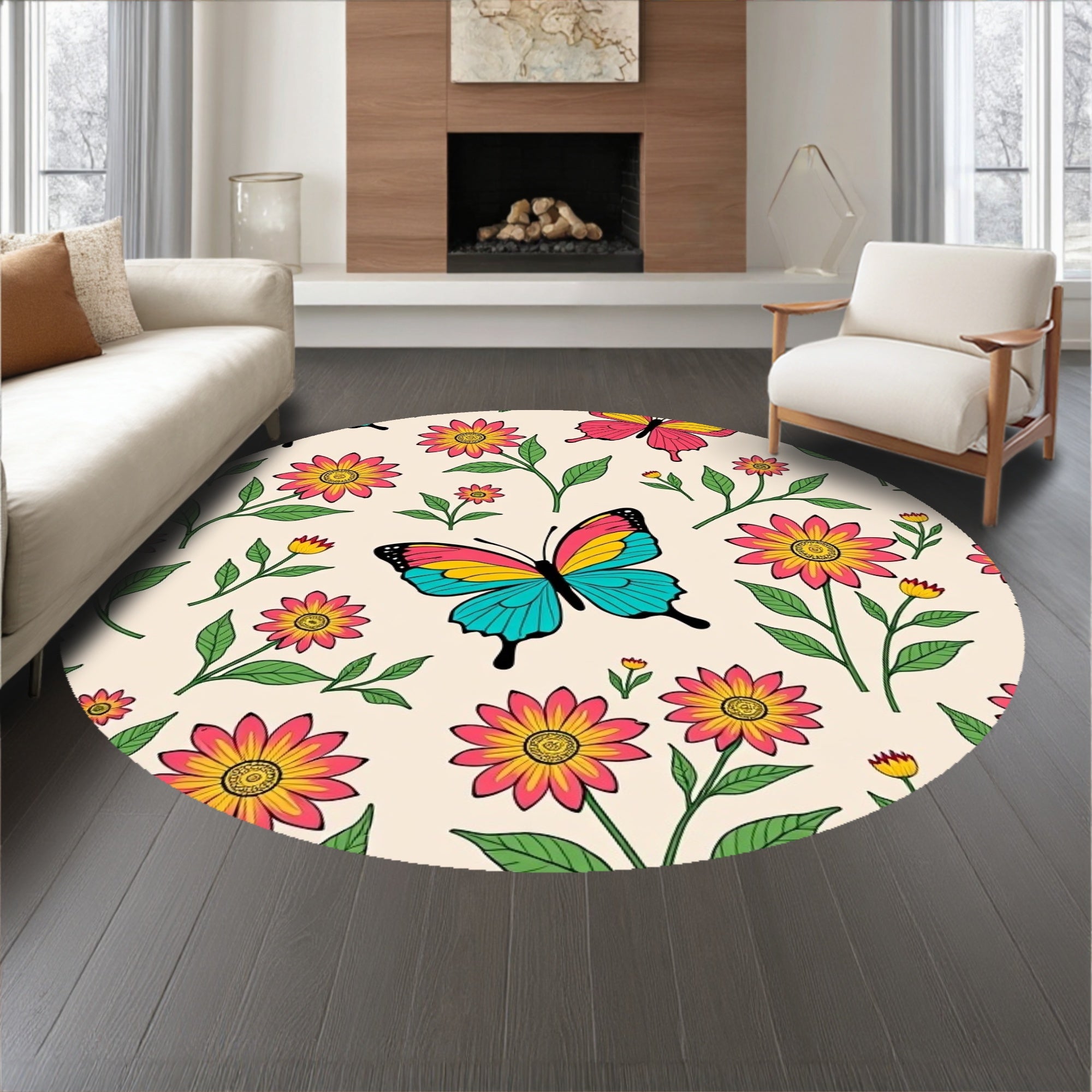 Garden with Floral Meadow Motifs Floor Covering (Pink)