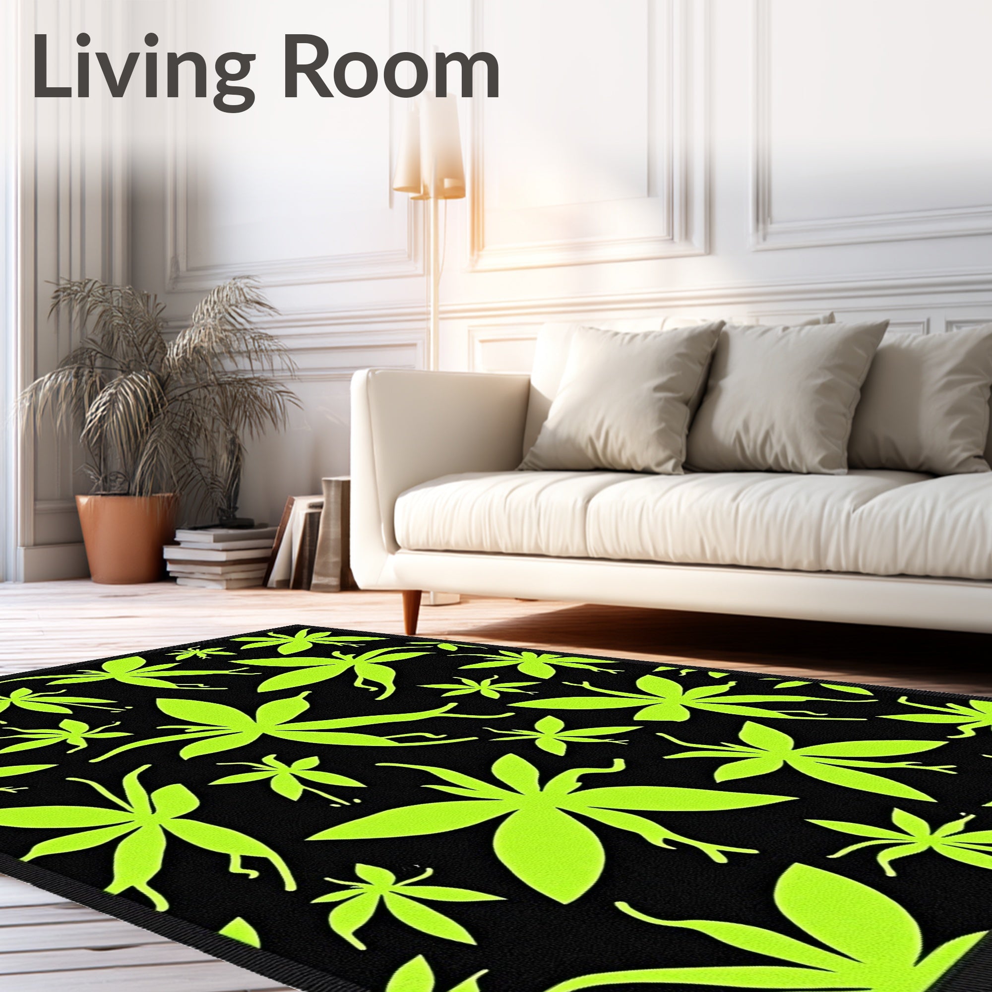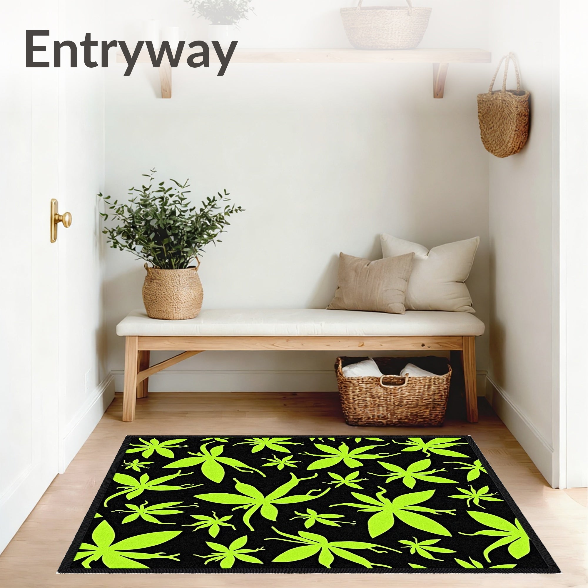 Flatwoven High Traffic Area Rug, Grunge Fairy Tale Bug Sanctuary Abstract Art, Non Slip, Stain Resistant, Washable Area Rugs for Living Room, Bedroom (Black) Overview: