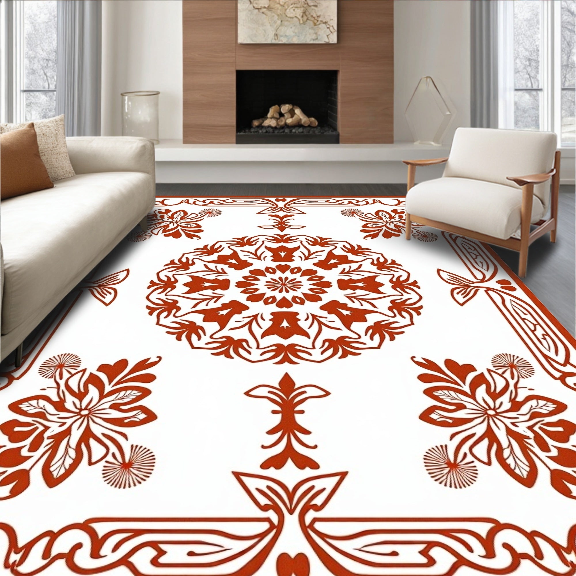 Flatwoven High Traffic Area Rug, Harvest Bloom Medallion Featuring Layered Floral Silhouettes, Non Slip, Stain Resistant, Washable Area Rugs for Living Room, Bedroom (Brown) Overview: