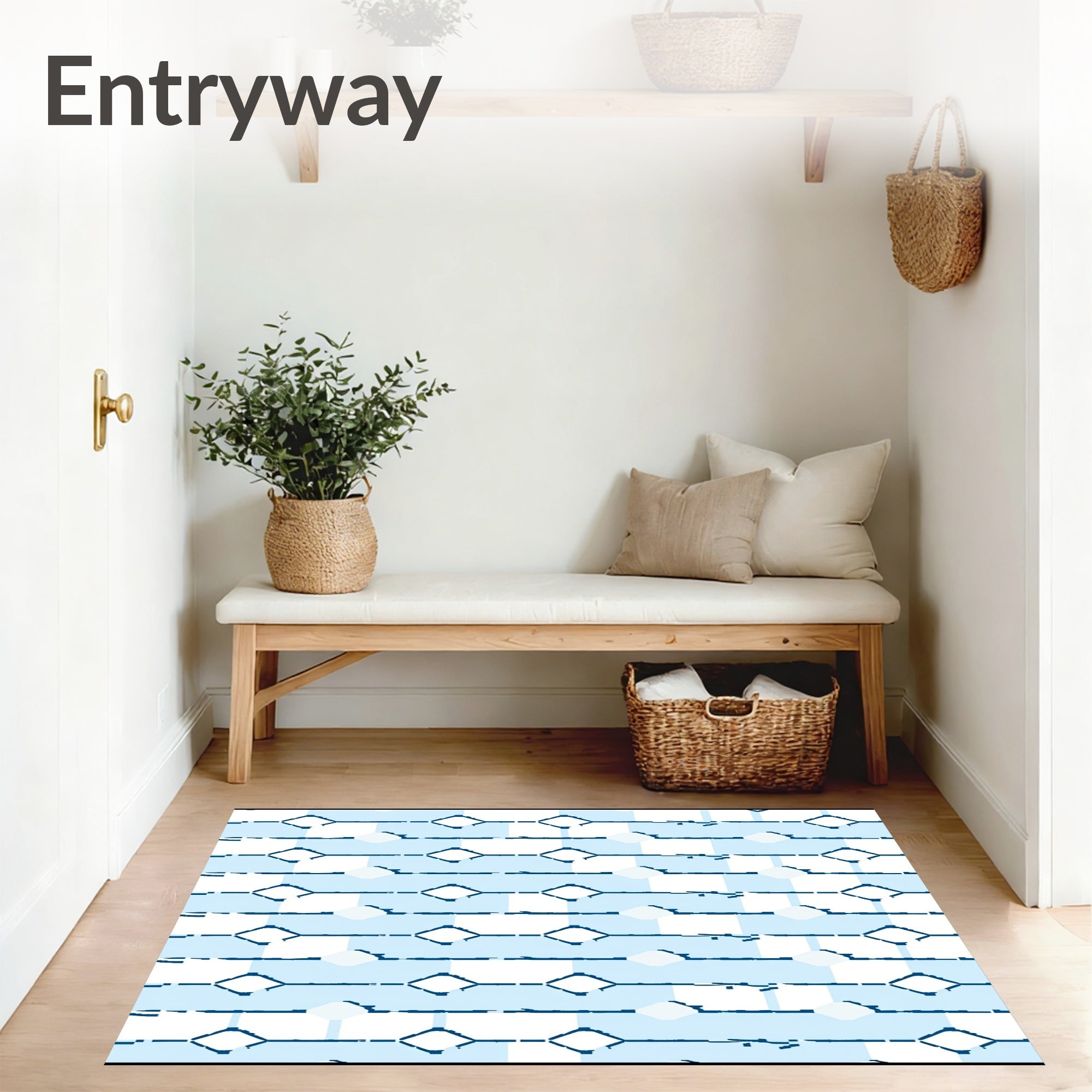 Flatwoven High Traffic Area Rug, Honeycomb Hexagonal Grid with Modern Minimalist Styling, Non Slip, Stain Resistant, Washable Area Rugs for Living Room, Bedroom (Blue) Overview: