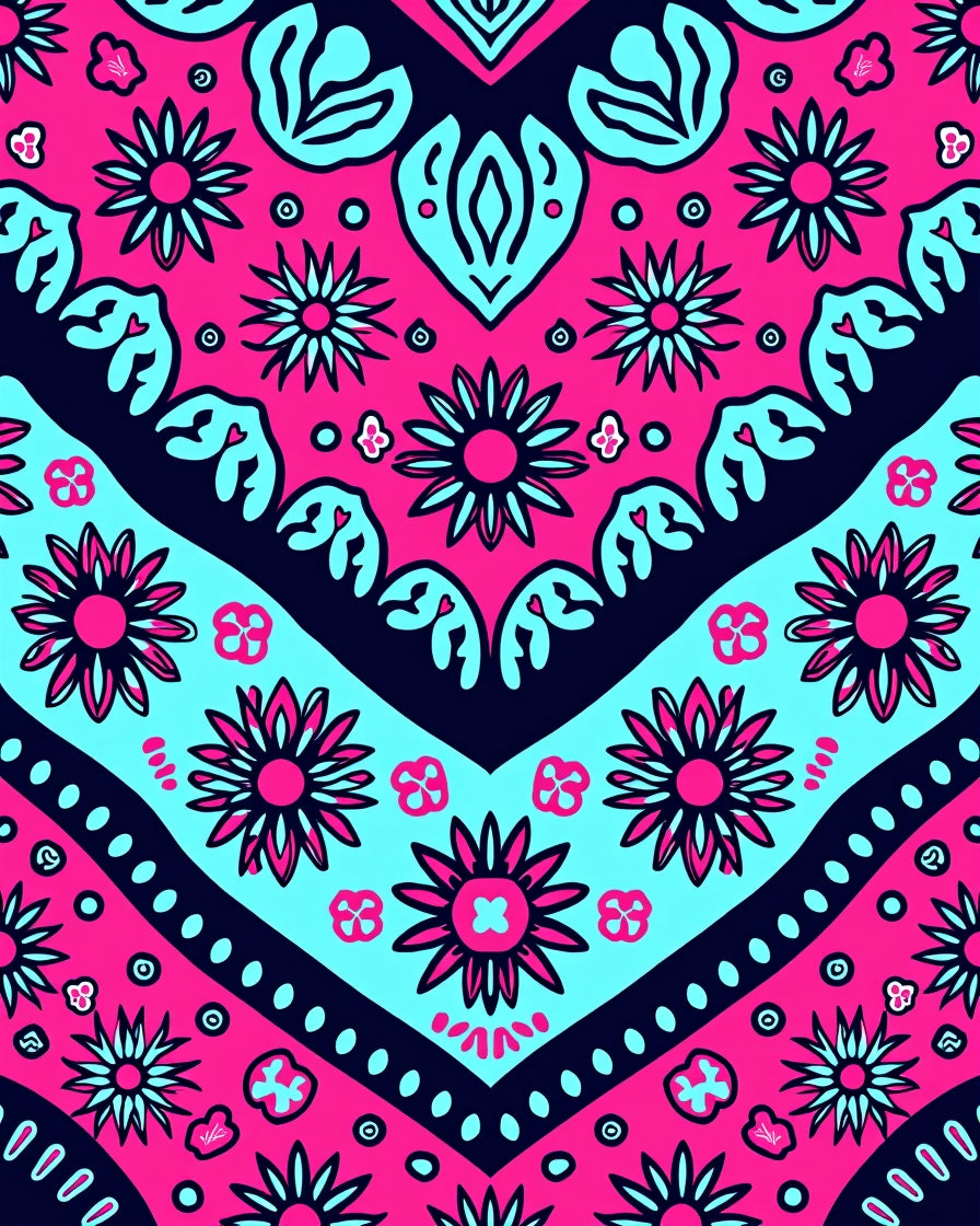 Interlocking Chevron Motif with Abstract Floral Embellishments (Pink)