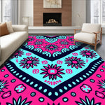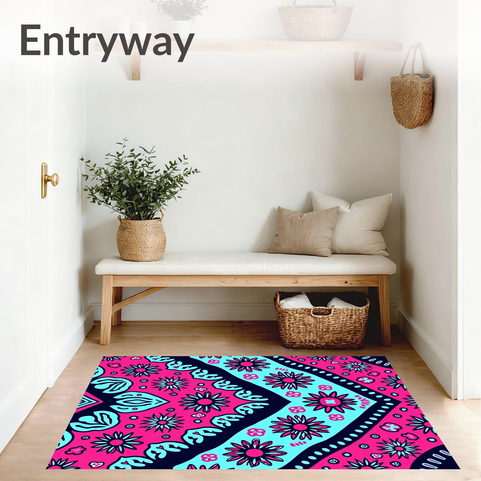 Flatwoven High Traffic Area Rug, Interlocking Chevron Motif with Abstract Floral Embellishments, Non Slip, Stain Resistant, Washable Area Rugs for Living Room, Bedroom (Pink) Overview: