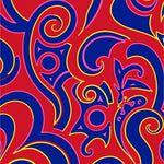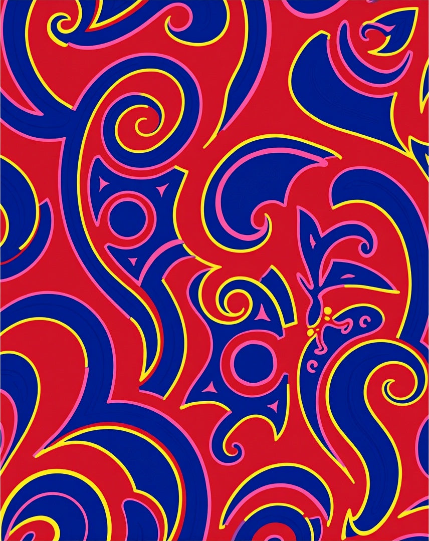 Interlocking Wave Motif with Abstract Floral Accents Modern Art Design (Red)