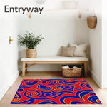 Flatwoven High Traffic Area Rug, Interlocking Wave Motif with Abstract Floral Accents Modern Art Design, Non Slip, Stain Resistant, Washable Area Rugs for Living Room, Bedroom (Red) Overview: