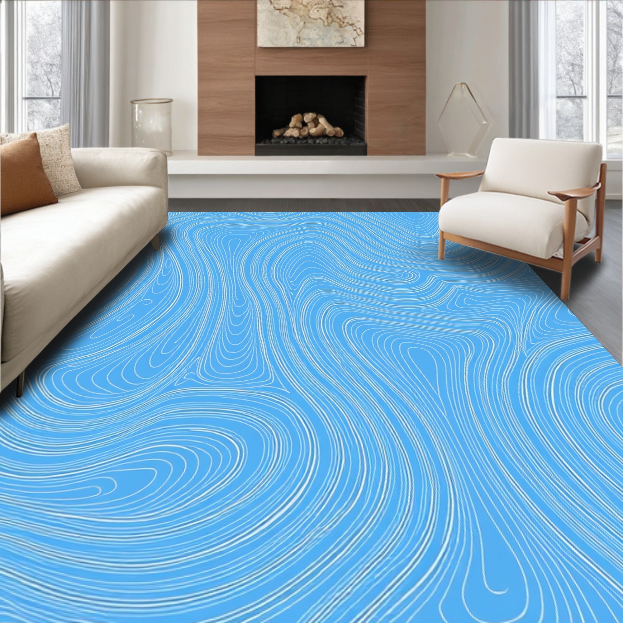 Flatwoven High Traffic Area Rug, Interlocking Waveforms with Flowing Lines and Cool Tonal, Non Slip, Stain Resistant, Washable Area Rugs for Living Room, Bedroom (Blue) Overview: