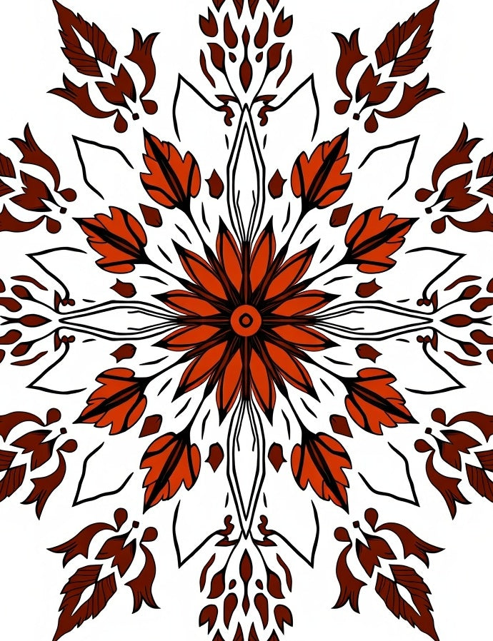 Intricate Motif with Symmetrical Floral Arrangements (Brown)