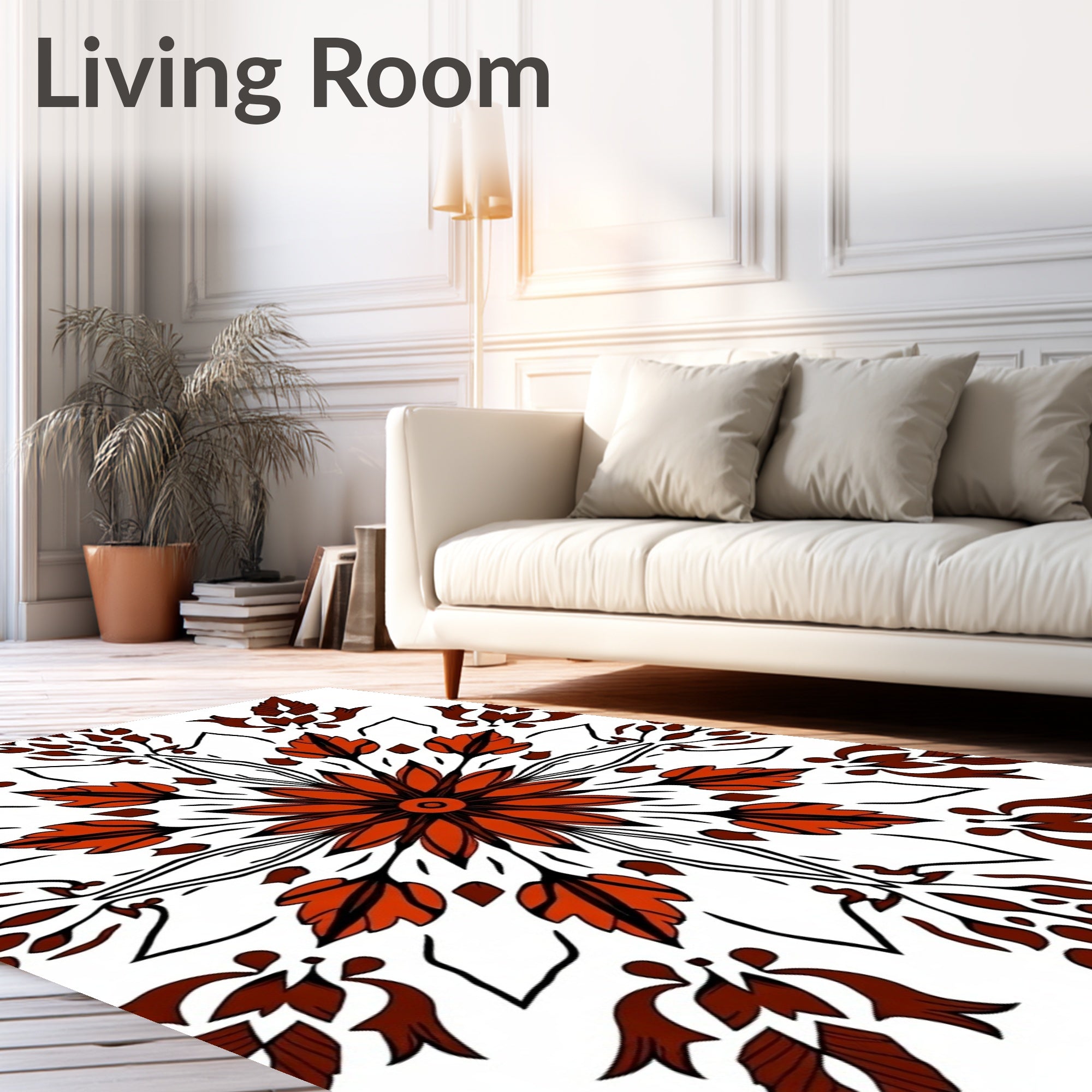 Flatwoven High Traffic Area Rug, Intricate Motif with Symmetrical Floral Arrangements, Non Slip, Stain Resistant, Washable Area Rugs for Living Room, Bedroom (Brown) Overview: