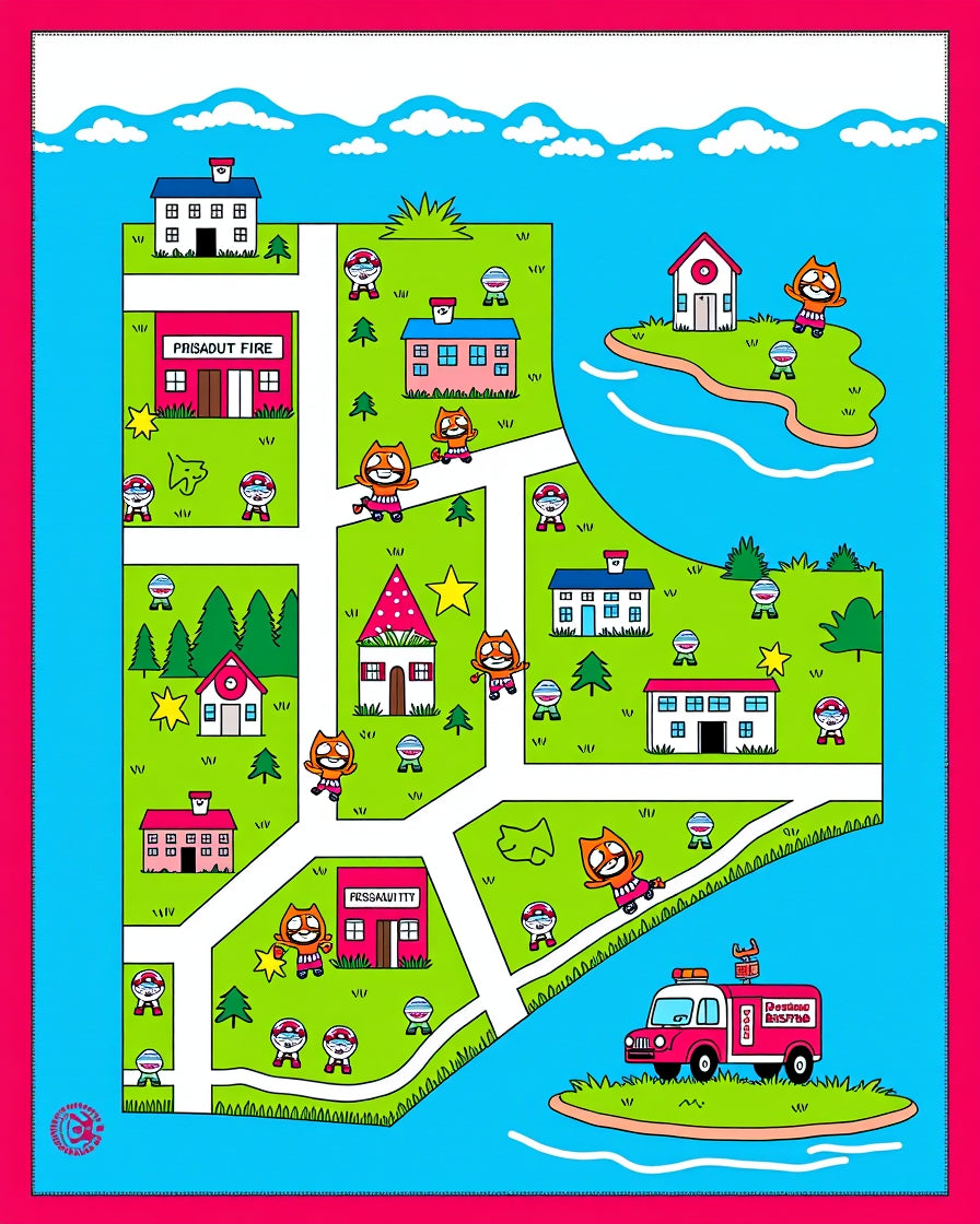 Flatwoven High Traffic Area Rug, Junior First Responders Neighborhood Exploration Guide, Non Slip, Stain Resistant, Washable Area Rugs for Living Room, Bedroom (Pink) Overview: