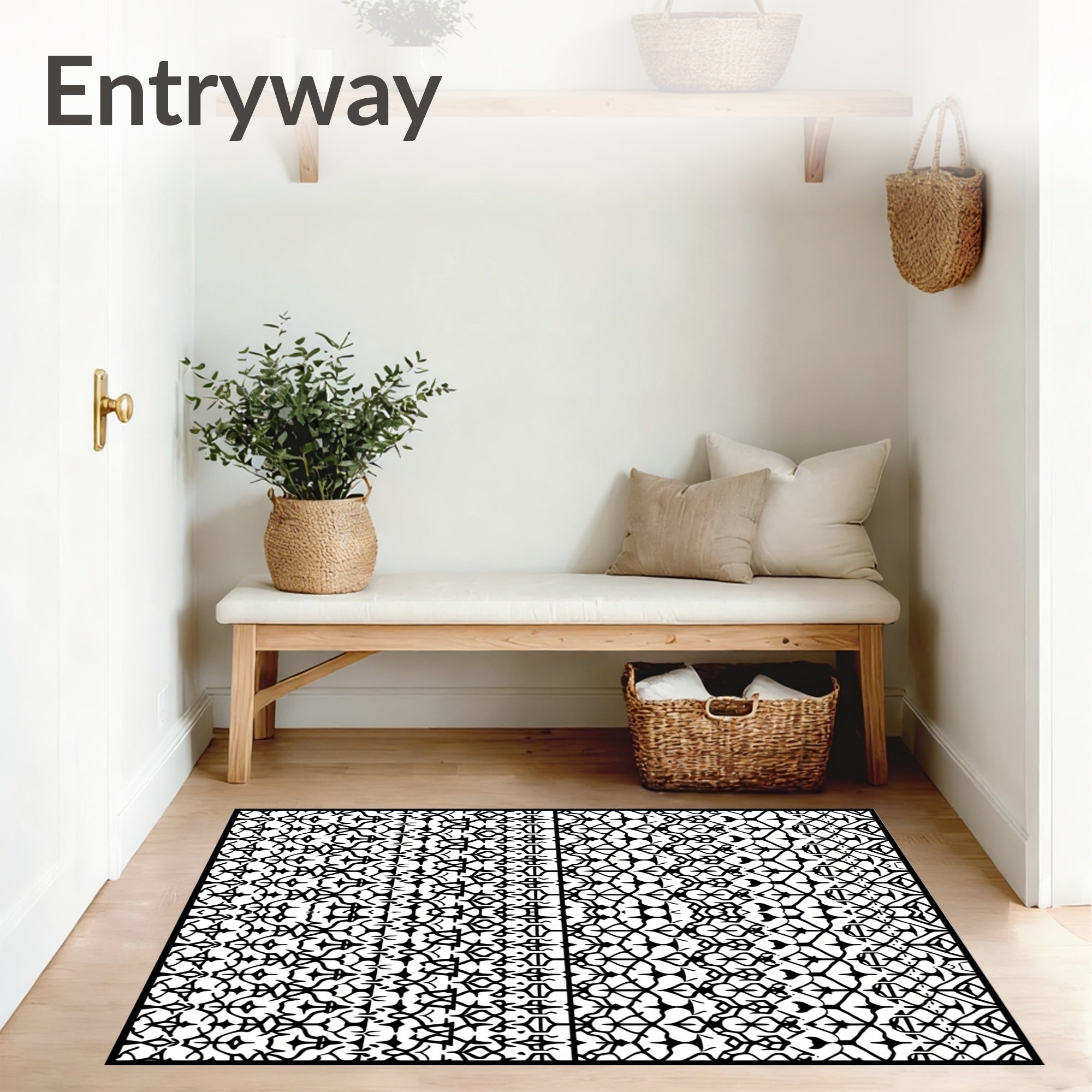 Flatwoven High Traffic Area Rug, Lattice Entryway with Trellis Grid Design, Non Slip, Stain Resistant, Washable Area Rugs for Living Room, Bedroom (Black) Overview: