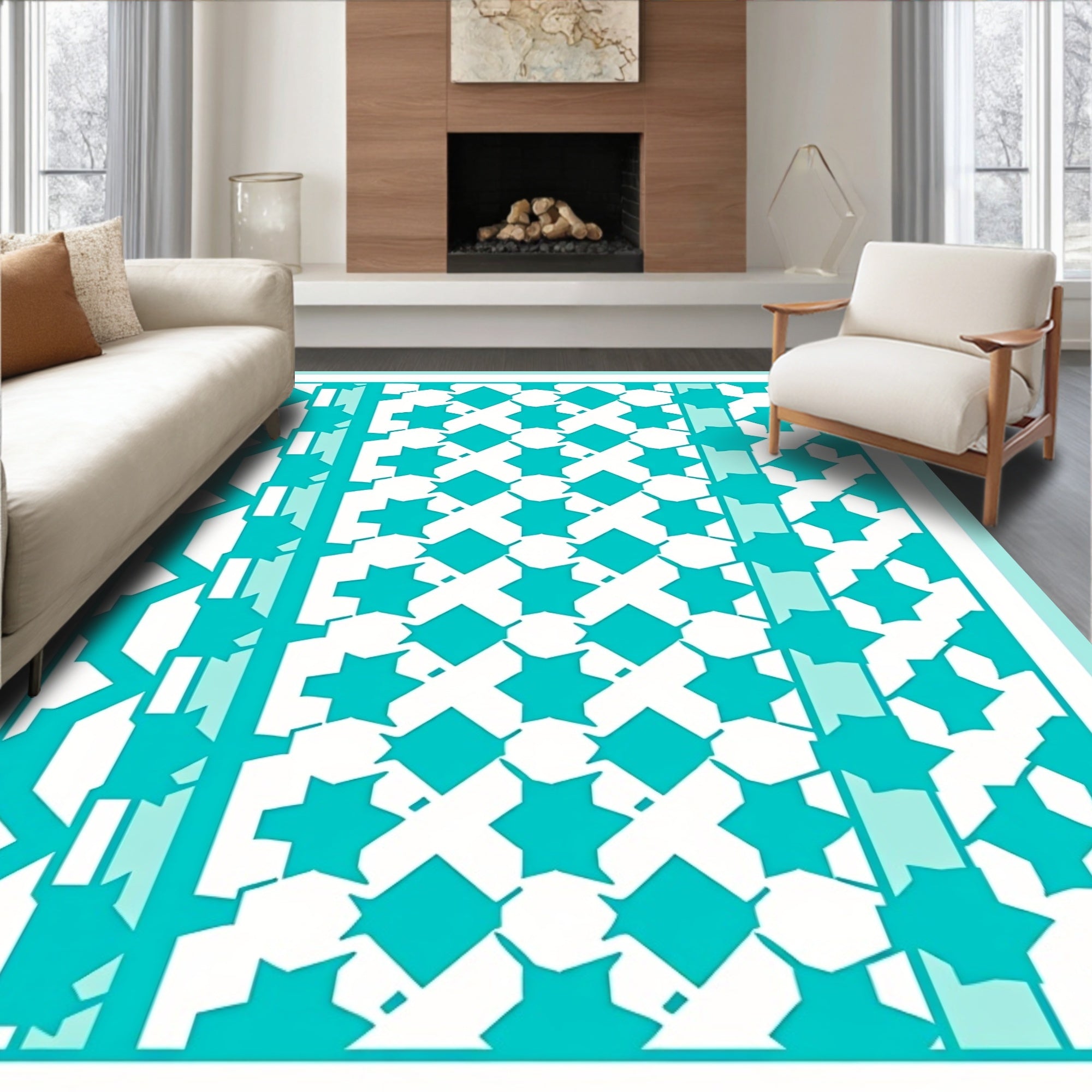 Flatwoven High Traffic Area Rug, Lattice Grid Contemporary Structured Design, Non Slip, Stain Resistant, Washable Area Rugs for Living Room, Bedroom (Teal) Overview:
