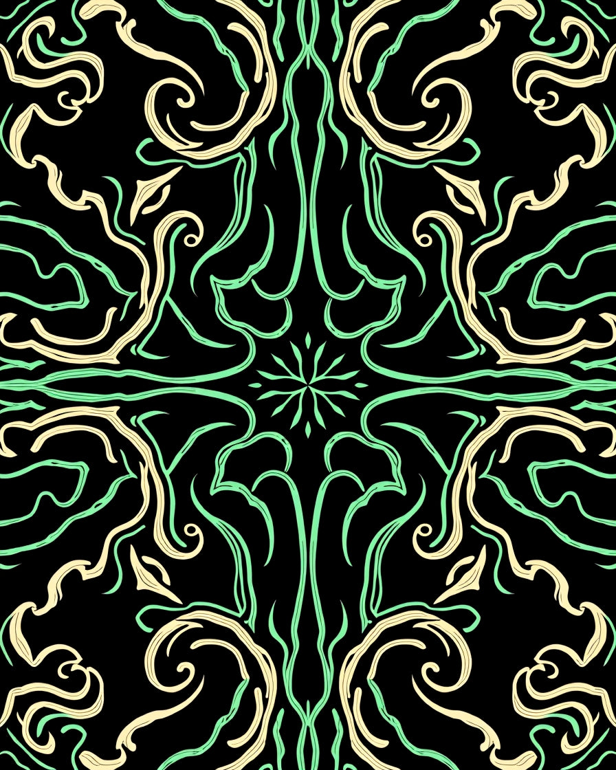 Lush Wave With Interlocking Swirls And Gold Highlights (Black)