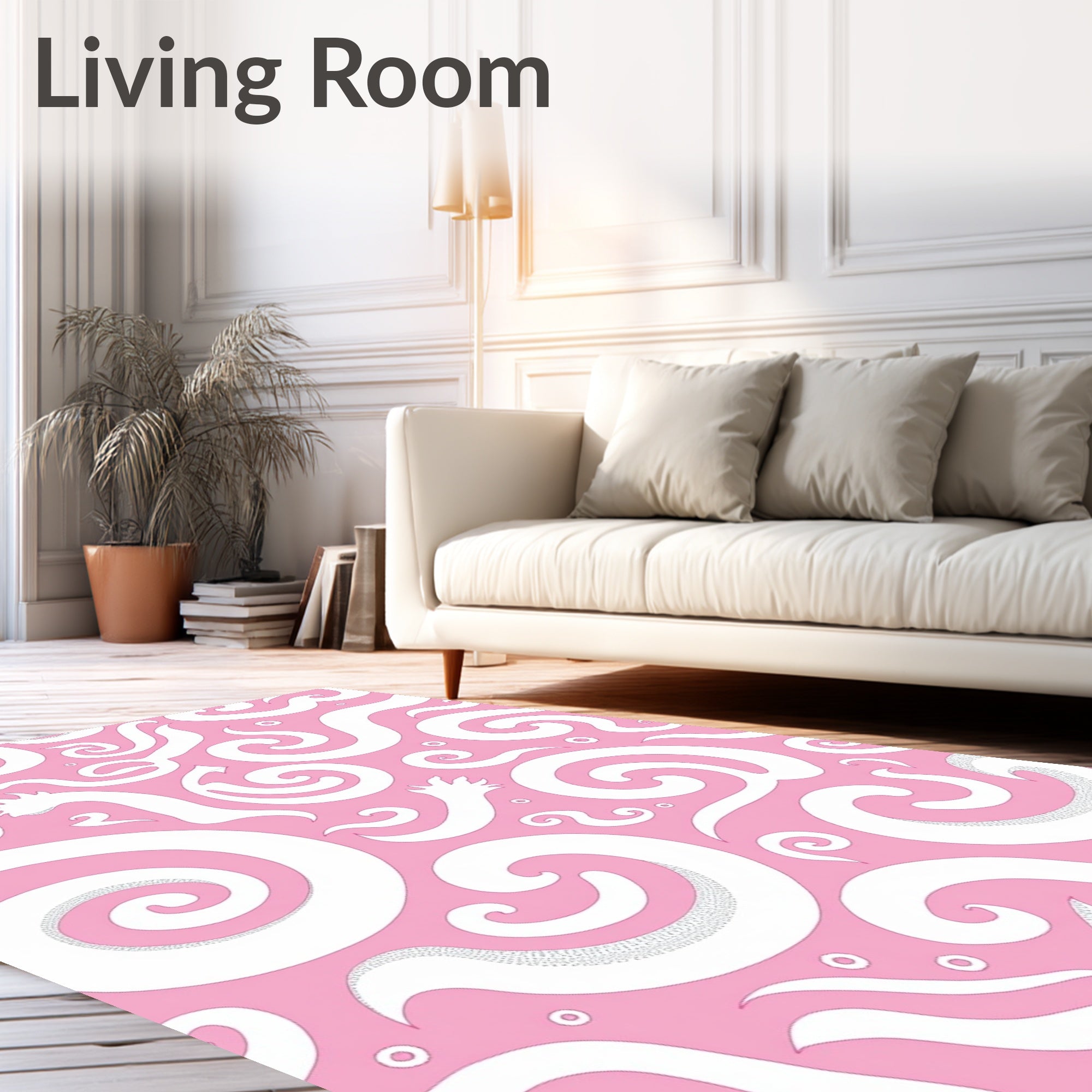 Flatwoven High Traffic Area Rug, Luxurious Cloud Swirl With Curved Motifs, Non Slip, Stain Resistant, Washable Area Rugs for Living Room, Bedroom (Pink) Overview: