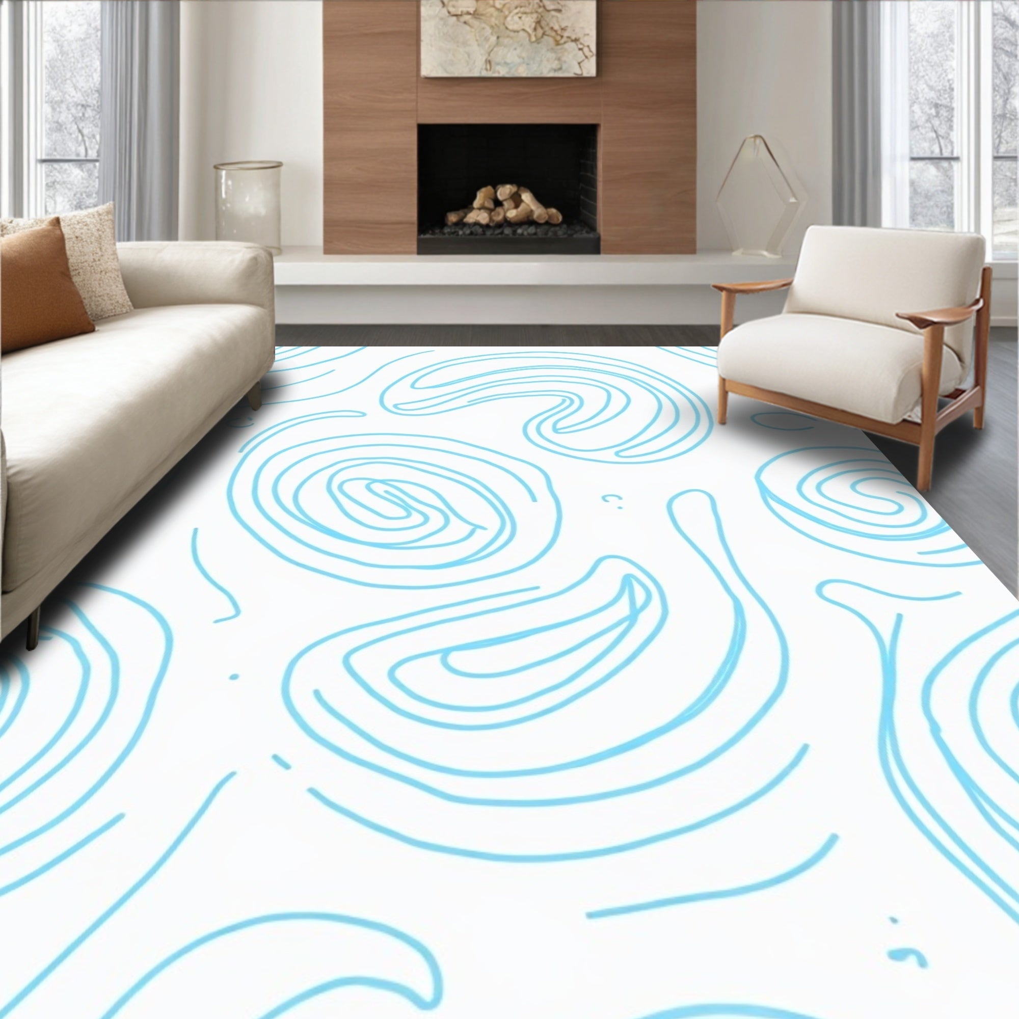 Flatwoven High Traffic Area Rug, Luxurious Cloud Swirl with Sculpted, Non Slip, Stain Resistant, Washable Area Rugs for Living Room, Bedroom (Blue) Overview: