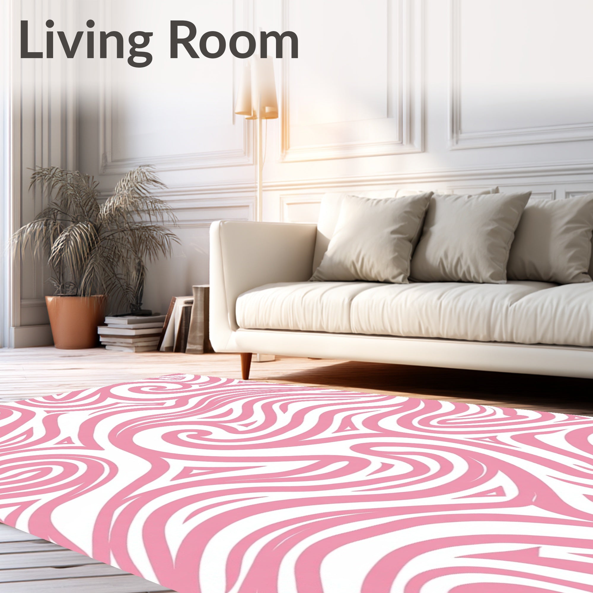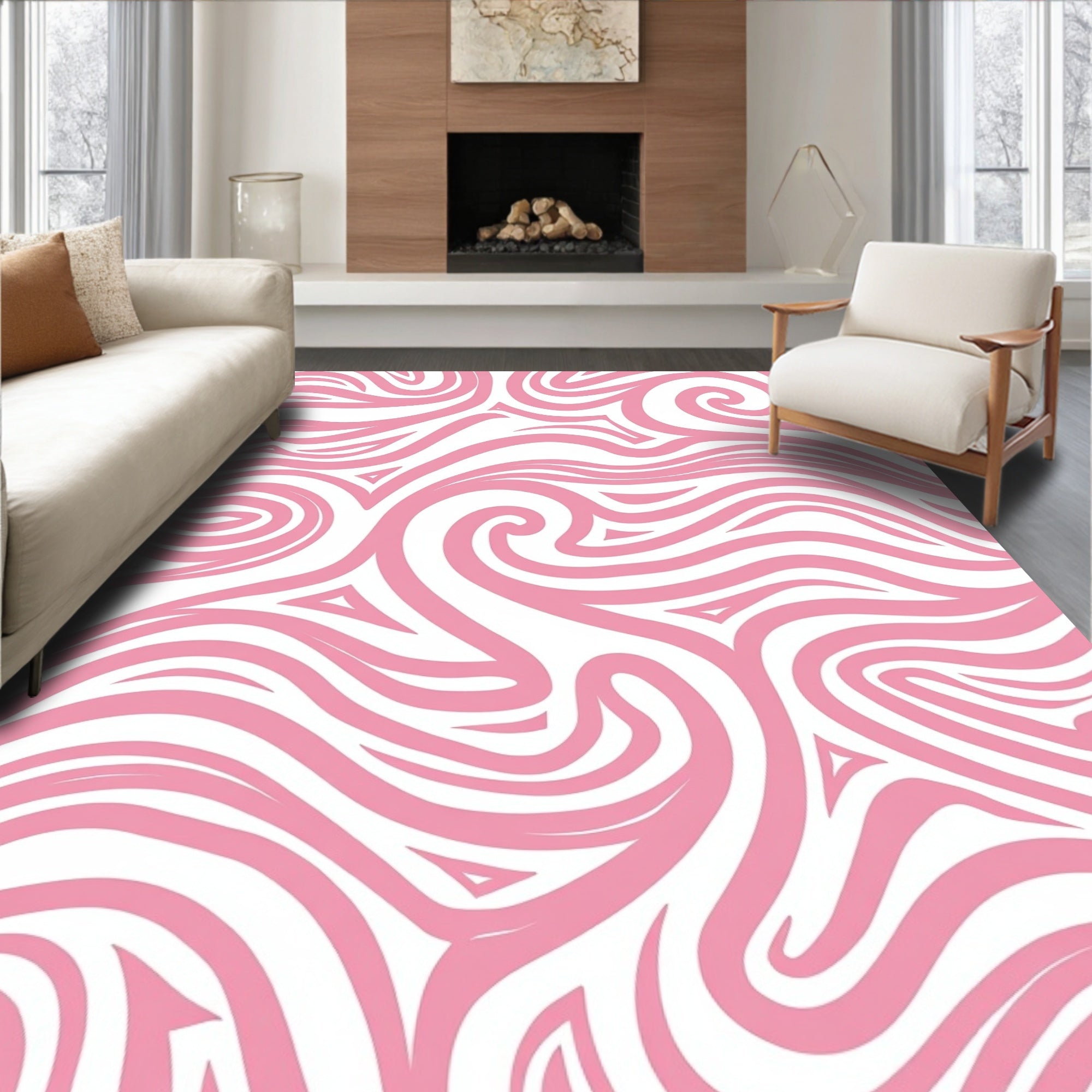 Flatwoven High Traffic Area Rug, Luxurious Cloud Swirl With Wave Motifs, Non Slip, Stain Resistant, Washable Area Rugs for Living Room, Bedroom (Pink) Overview: